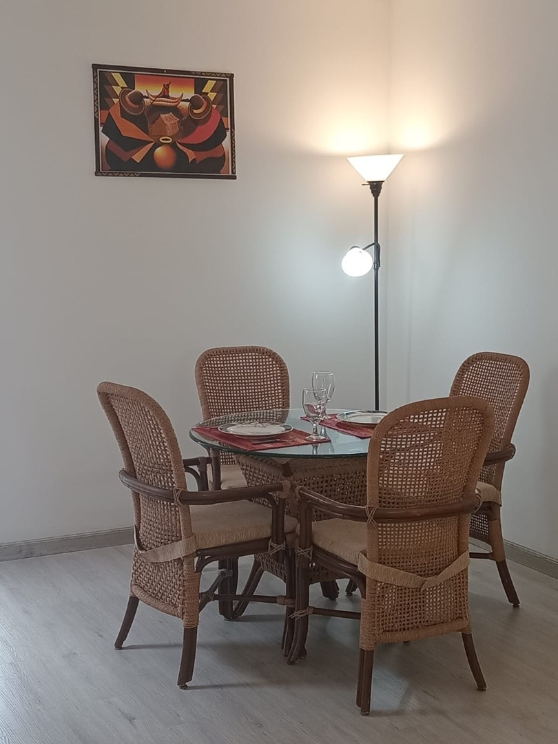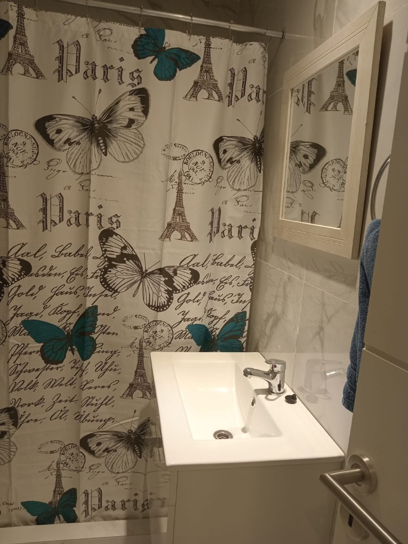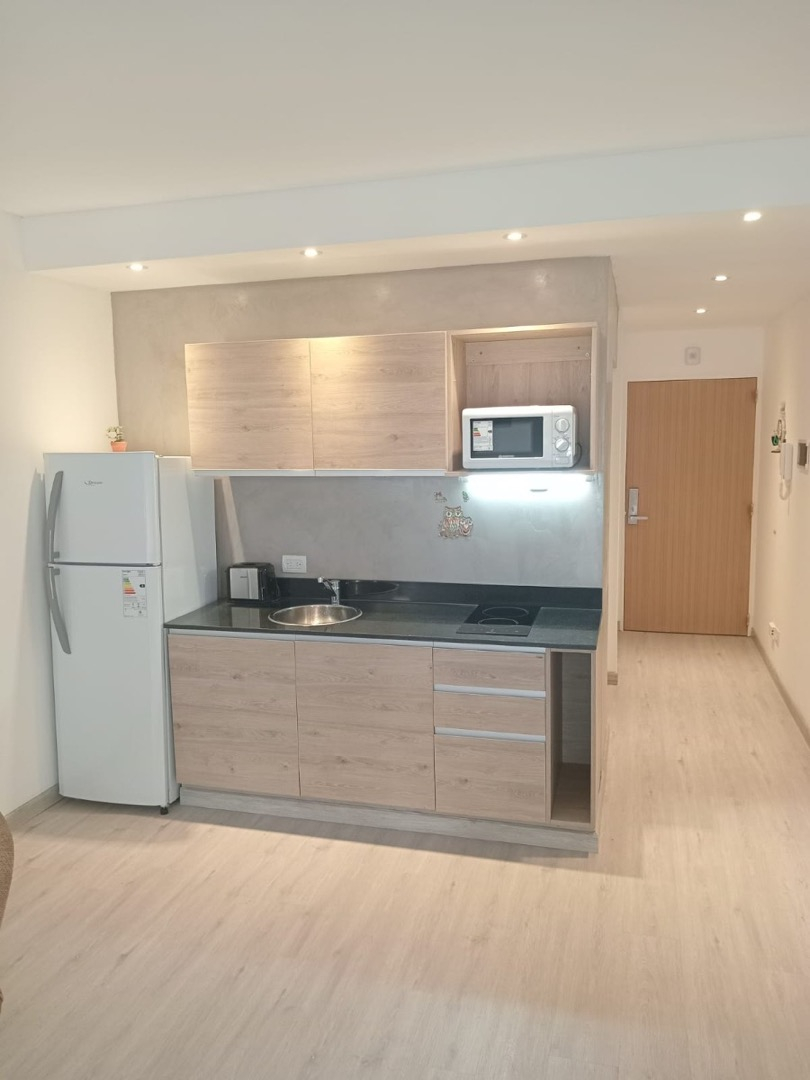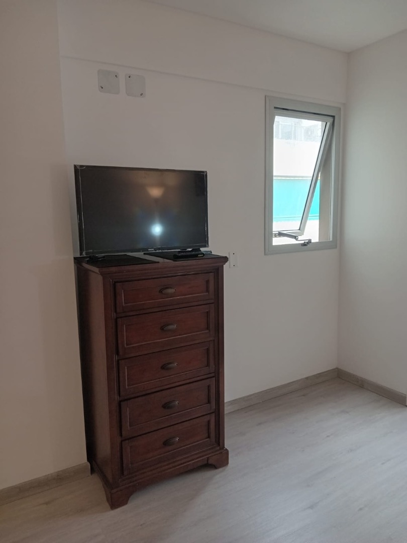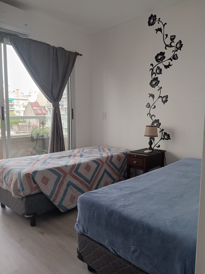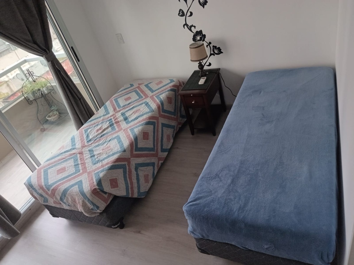 El departamento es a estrenar, cuenta con cerradura eléctrica para acceder. Una habitación con dos camas de una plaza, aire acondicionado, ropa de cama, toallas, mesa de luz, cuenta con salida directa al balcon, ropero pequeño. Cocina con mesa y sillas, mueble con televisión, cocina eléctrica, heladera, microondas, tostadora, utensilios de cocina. Balcon Muy luminoso.