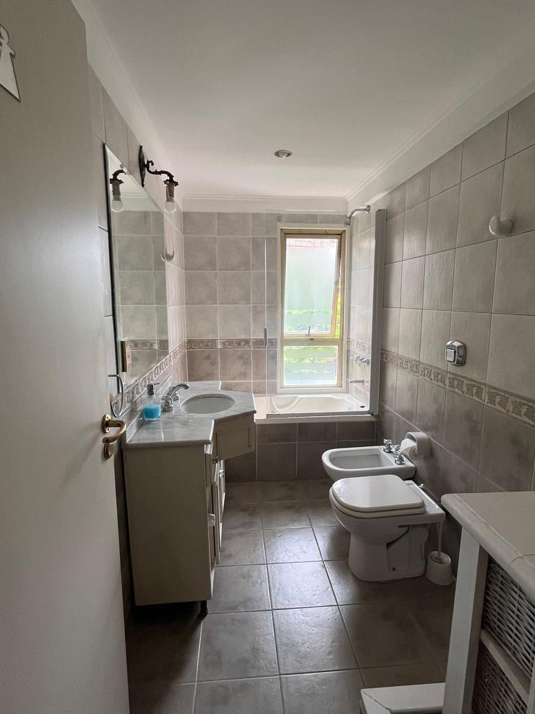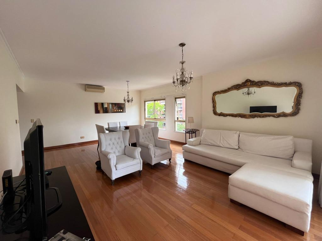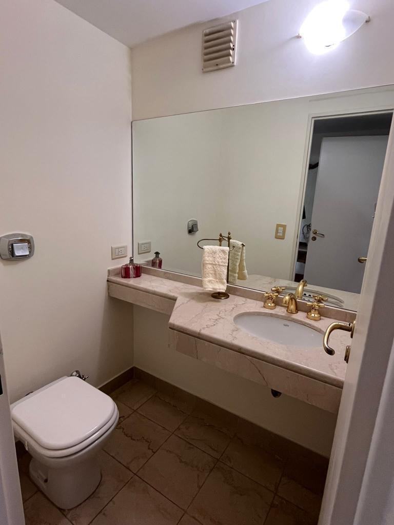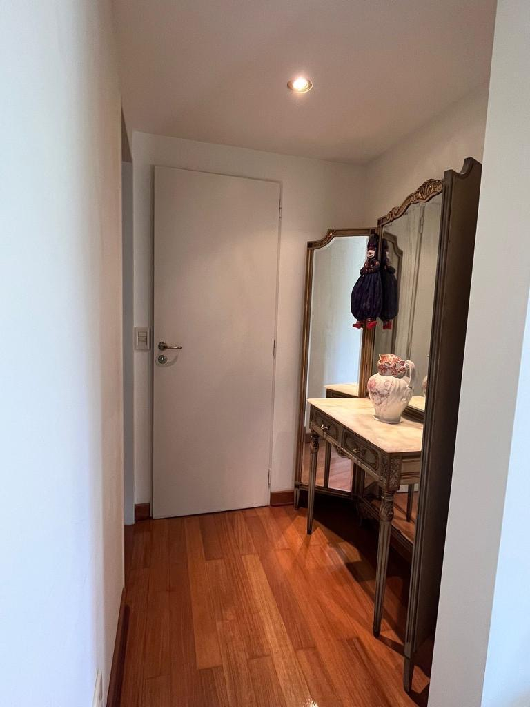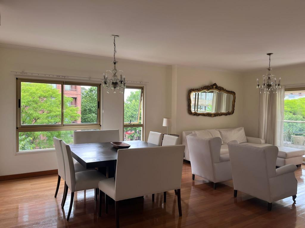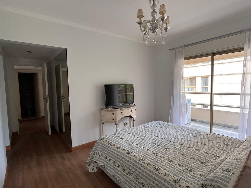 El departamento cuenta con 3 habitaciones, la habitación principal en suite con vestidor y balcón, televisión, placard con caja fuerte, lampara araña, pisos de parque, baño con bañera, lava manos, espejo, inodoro, bidet, muy amplio. Segundo dormitorio con cama de una plaza, con escritorio y placard. Tercer dormitorio con cama de una plaza, escritorio. Baño con bañera, bidet, lava manos, inodoro. Toilette de recepción con inodoro y lava manos con espejo grande. Living amplio con 3 sillones, mueble de televisión con televisión, decoración con lamparas de araña, mesa con sillas. Cocina con heladera con frezzer, cocina, alacena, bajo mesada, utensilios de cocina, microondas, lavarropas automático, tostadora, cafetera. Mesa con 6 sillas en el sector de la cocina. Cuenta con cocina techada y balcón.