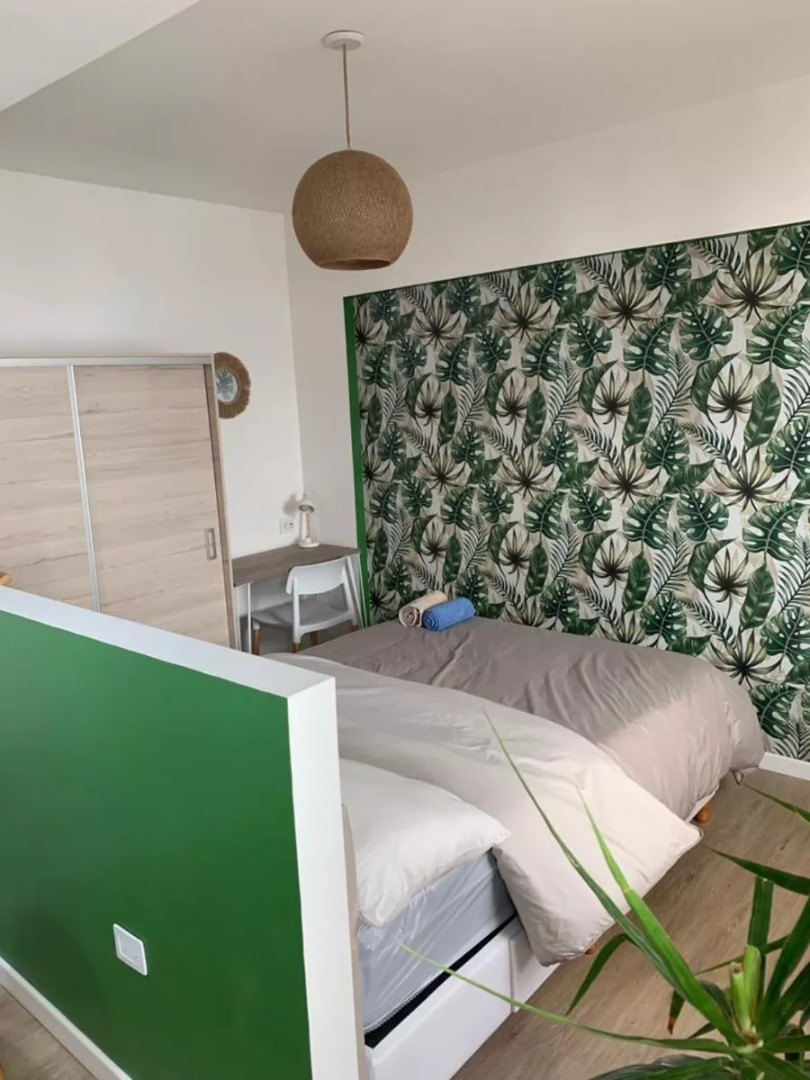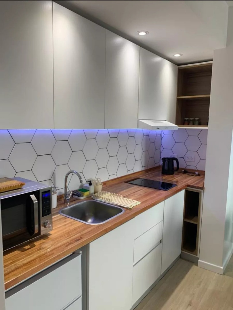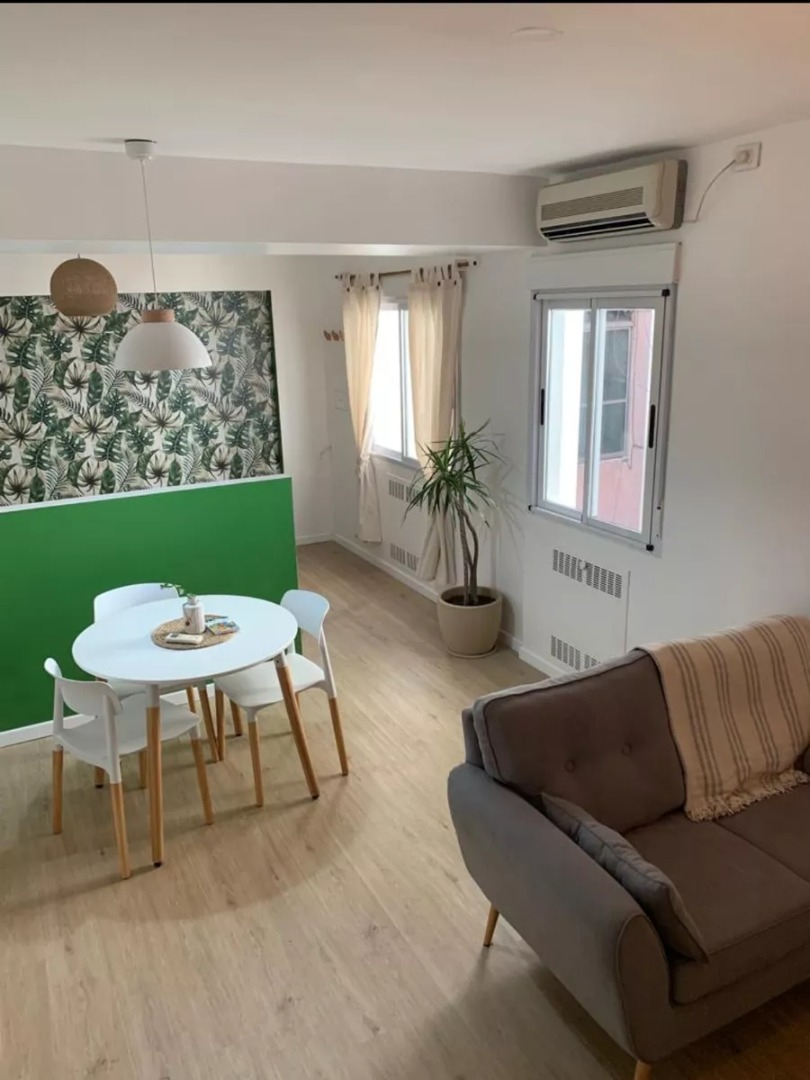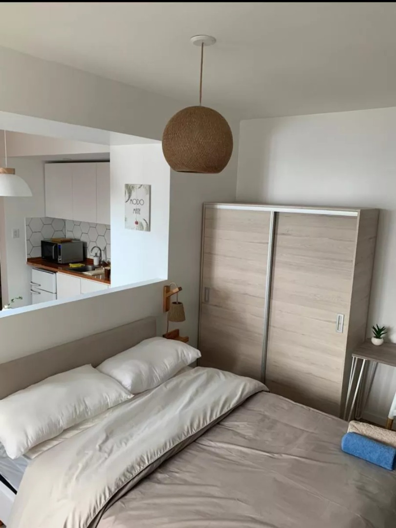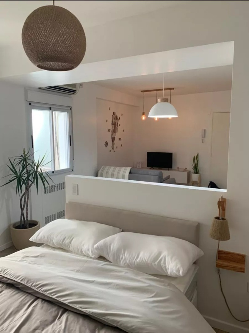 El departamento tiene amplias ventanas que le aportan mucha iluminación natural. La cocina está amoblada con alacena y bajo mesada y completamente equipada con heladera bajomesada con frizzer, anafe eléctrico, microondas, electrodomésticos, utensilios de cocina y vajilla. Tiene una mesa de comedor con cuatro sillas, sofá, Tv Led y aire acondicionado. Cuenta con una media pared que separa el área del dormitorio, el cual cuenta con cama tamaño matrimonial, placard, y escritorio. Wifi alta velocidad. El baño es completo con ducha y tiene toallero eléctrico y lavarropas.