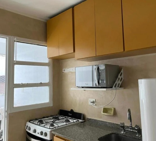 El departamento cuenta con un dormitorio con cama matrimonial, baño completo, living comedor, cocina separada, lavadero y balcón. Ideal para dos personas.