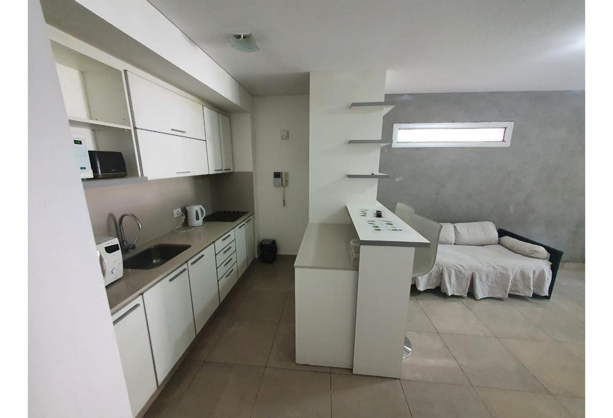 El ambiente principal es amplio y divisible, posee cocina integrada eléctrica con barra desayunadora, aire acondicionado frio/calor.