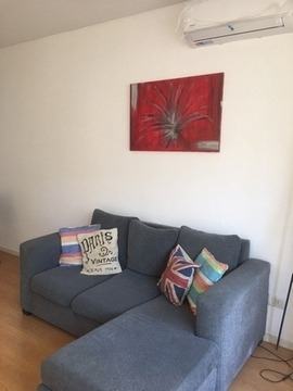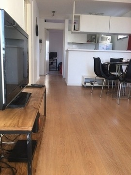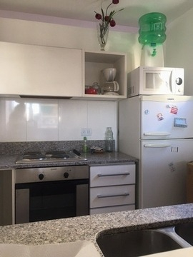 El departamento es luminoso y tranquilo. La cocina está amoblada con alacena y bajomesada y completamente equipada con heladera con frizzer, anafe eléctrico, cocina eléctrica, microondas, electrodomésticos, utensilios de cocina y vajilla. El área del living comedor tiene mesa de comedor con sillas, sofá, Tv Led 32', aire acondicionado frío/calor. Tiene también un ventanal con salida hacia un balcón con vista abierta hacia el contrafrente, tiene mesa con sillas. El dormitorio cuenta con sommier de dos plazas, doble placard espejado, blanquería, caja de seguridad y una ventana amplia. El baño es completo con bañera.