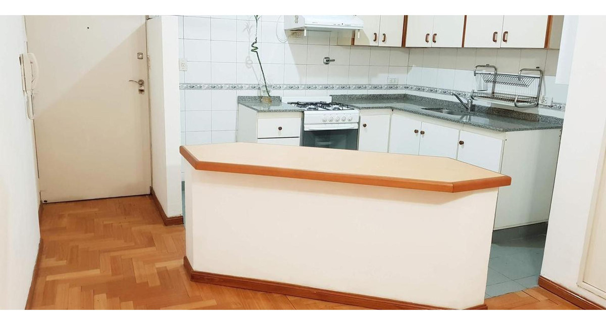 Piso al frente con balcón, muy luminoso, calefacción tiro balanceado, estado impecable, cocina comedor integrada con muebles bajo mesada y alacenas, con desayunador, conexión y espacio para lavarropas, distribución amplia y moderna.