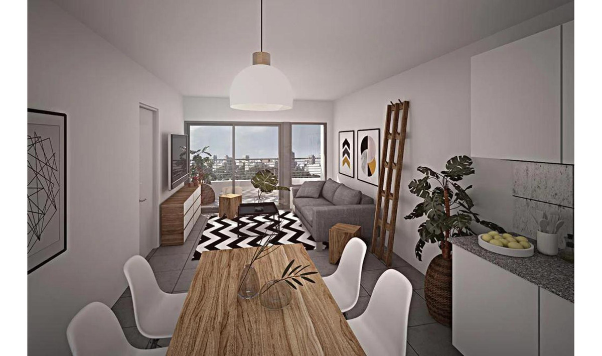 Ambiente principal living comedor amplio y aireado con balcón excelente vista y cocina integrada eléctrica, cuenta con mobiliario de cocina completamente nuevo. Habitación confortable y luminosa. Baño completo con bañera.