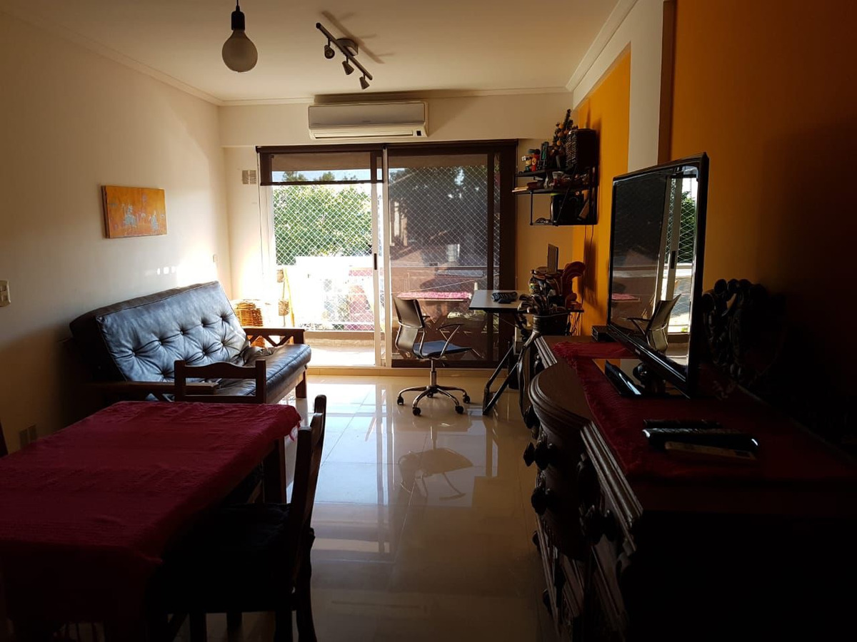 El departamento cuenta con sector de living amplio, con pisos de ceramica, pintado, aire acondicionado, salida directa al balcon, muy luminoso. Cocina con alacena, bajo mesada, ventana. Habitación con placard amplio, ventada al costado. Baño con bañera completo. Balcon con parrilla individual. Cuenta con Gas Natural. Se ubica en el 3er piso.