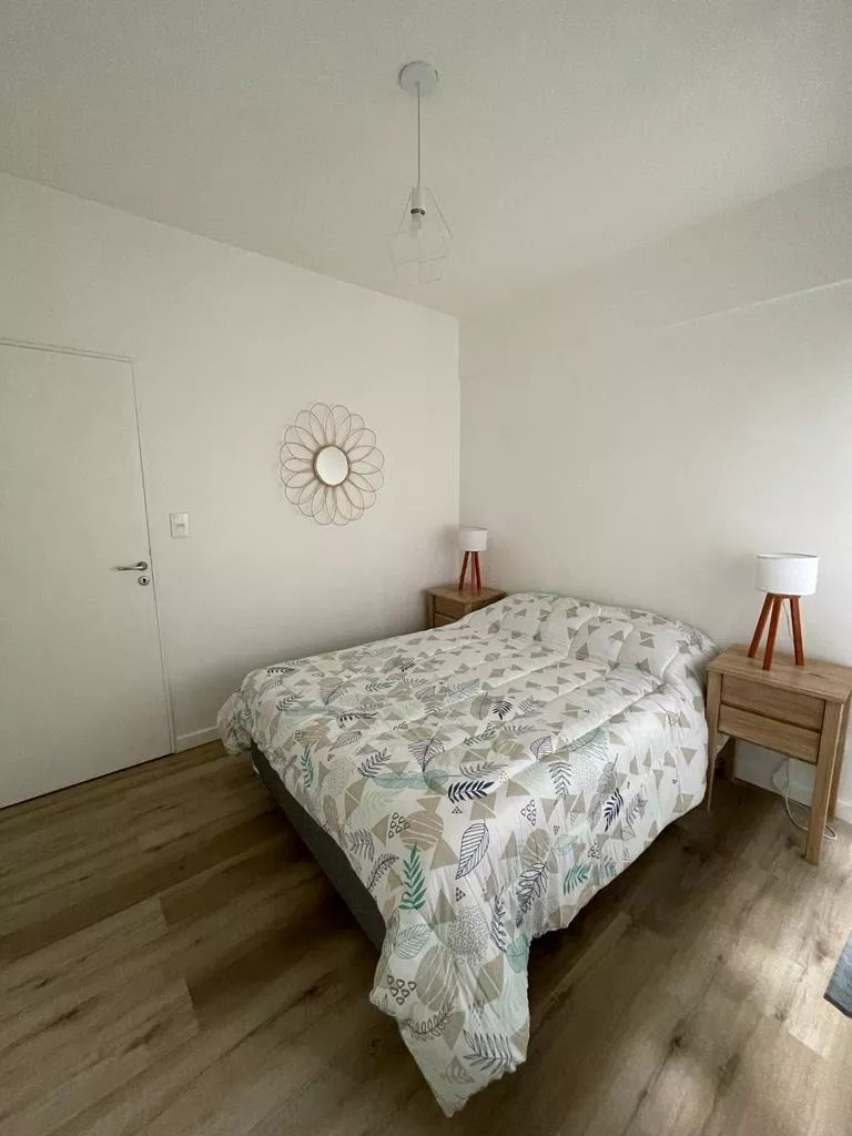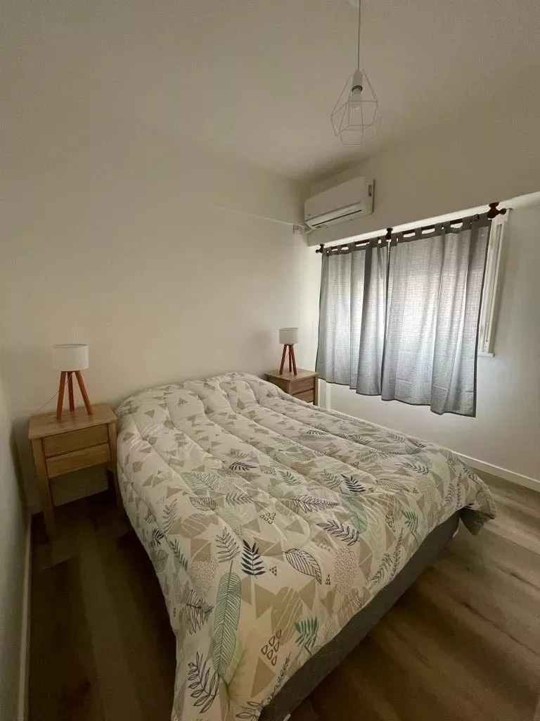 Departamento reciclado a nuevo. Cuenta con una cocina separada amoblada y completamente equipada con heladera con freezer, cocina a gas, electrodomésticos, utensilios de cocina y vajilla para cuatro personas. Tiene lavadero independiente. El living comedor cuenta con mesa de comedor con sillas, sofá cama, Smart TV 43', aire acondicionado. El dormitorio cuenta con sommier de dos plazas, mesitas de luz, placard empotrado amplio y aire acondicionado. El baño es completo con bañera.