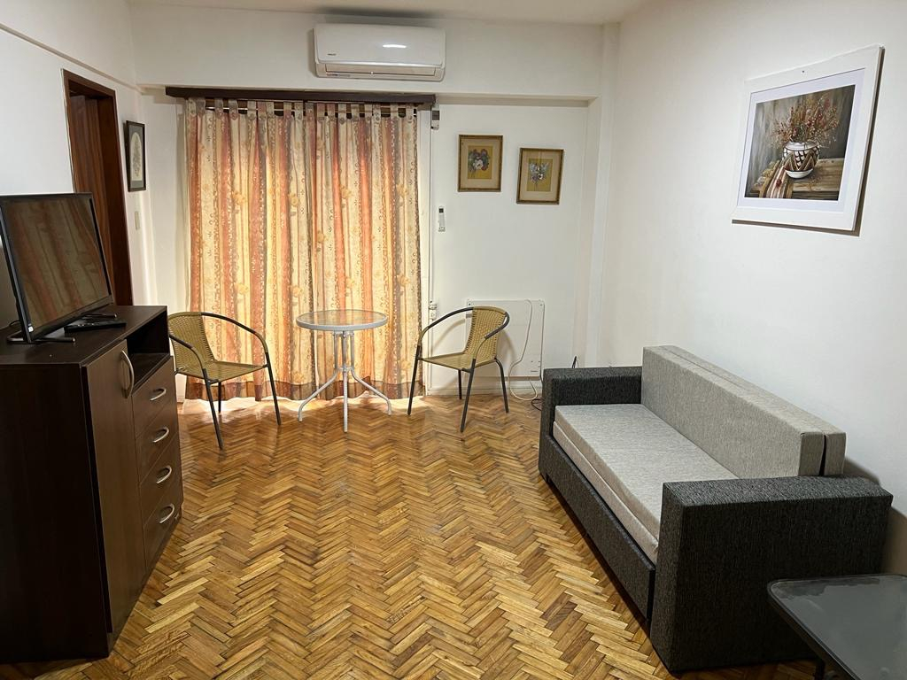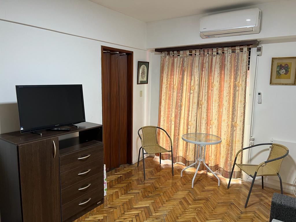 El departamento cuenta Piso de parque plastificado, TV LED, Aire Acond Split-(Frio/calor), Calefactor eléctrico, Panel eléctrico, adherido a la pared, Placard, Conexión internet y cable. Cocina independiente, heladera, cocina a gas natural calefon, horno microondas, horno eléctrico, cafetera, tostadora, Pava eléctrica, Vajilla, Baño completo con bañera. ACLARACION respecto al mueblario que se ofrece con la modalidad amueblado, se le agregara un sofá cama de dos plazas ,una mesa y dos sillas, televisor led, un espejo colgante, un mueble placard adicional, elementos decorativos como cuadros y plantas, lamparas de pie. Cuenta con balcón al frente, luminoso. NO tiene lavarropas automático.