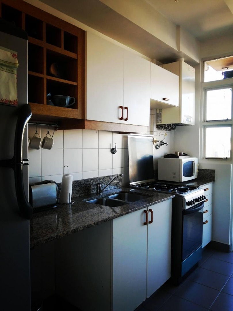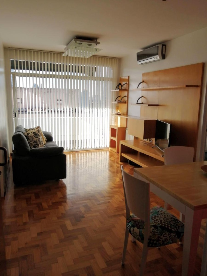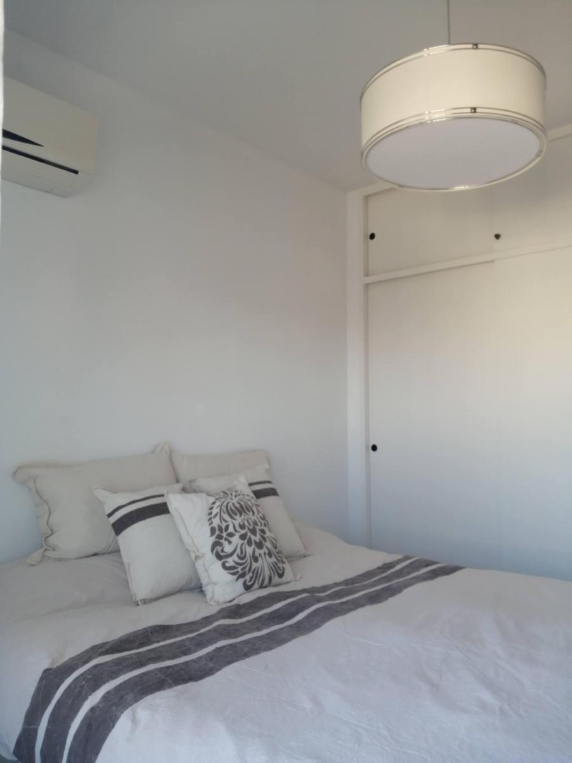 Luminoso Departamento con 1 habitación con aire acondicionado y placar. Cocina equipada con Cocina, Heladera, alacena y bajo mesada, Microondas, Balcon con Hamaca y pileta. Comedor con sillones, mesa con sillas, y televisión.