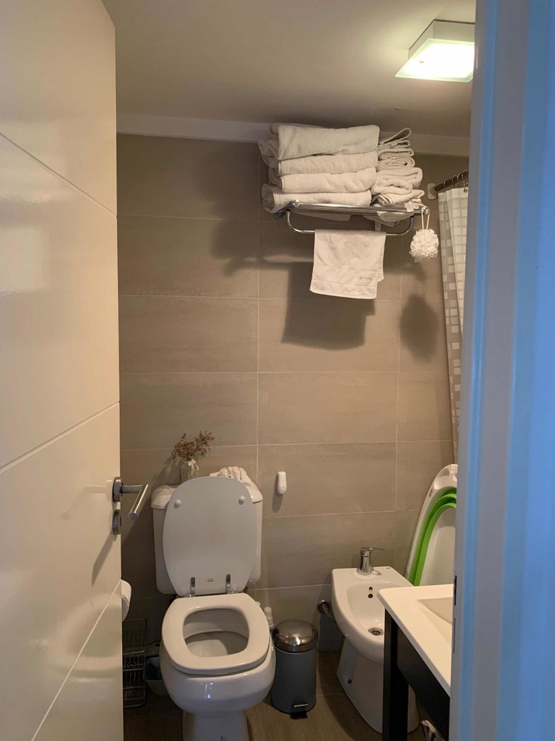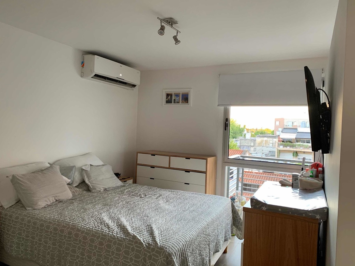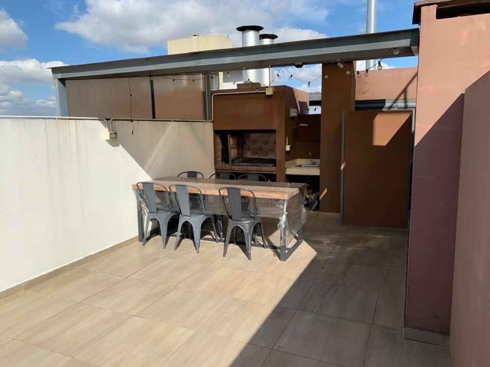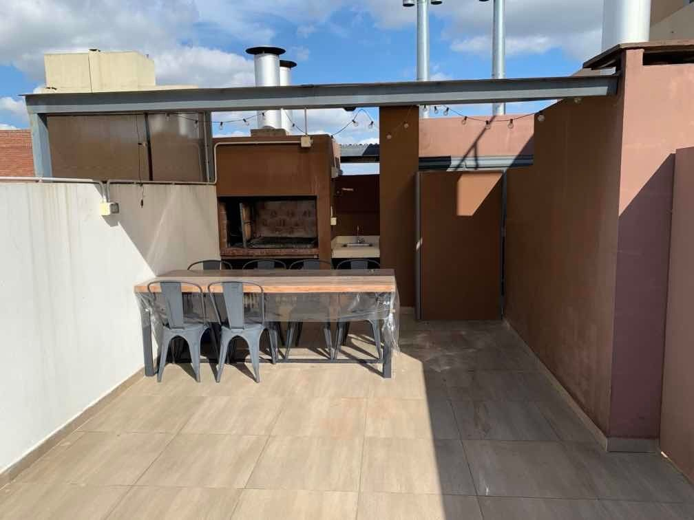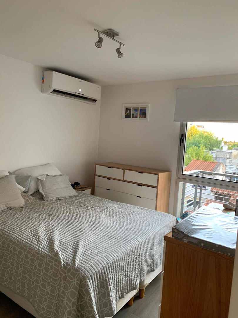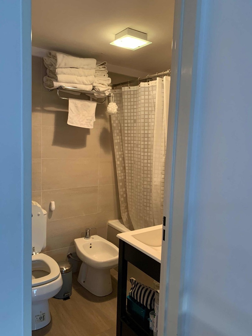 El departamento es un monoambiente dividido, cuenta con sector de living, cocina con bajo mesada, tractor del humo, lugar para poner heladera y cocina. Con salida directa al balcón por ventanal, cuenta con cortinas roles blackout en todas las ventanas. Habitación luminosa con placard, pisos de porcelana, paredes pintadas en perfecto estado. Baño con bañera, inodoro, bidé, lava manos. El departamento cuenta con Terraza y parrilla propia.