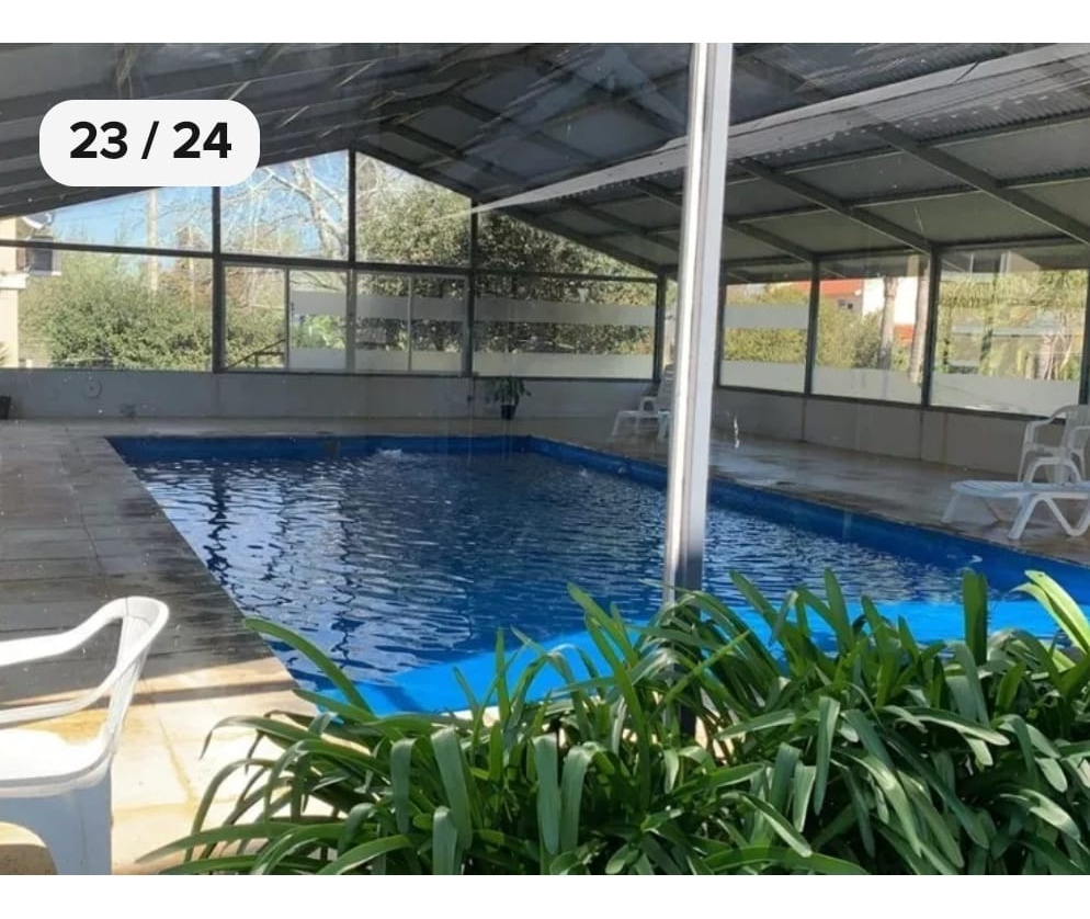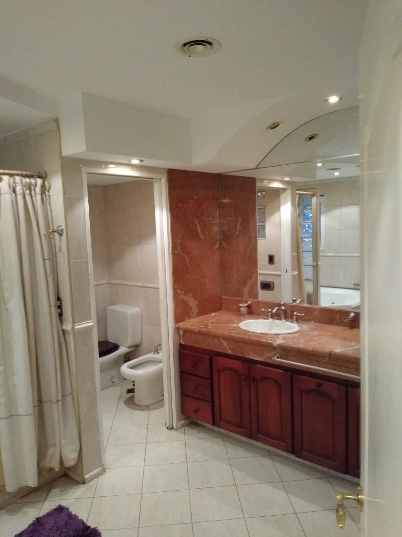 La cocina posee mesada de mármol de 3x2 metros en forma de L que sirve de barra desayunadora y facilita los usos y espacios para cocinar; horno y cocina empotrados de acero inoxidable, gran amueblamiento blanco de alacena y bajo mesada. Gran suite de 6x5m con vestidor, luces empotradas y gran placard en antebaño. El baño posee una bacha doble (todo de marmol) con espejo imperioso, todo delimitado y sectorizado en cuanto a ducha y sanitarios. No puede faltar el yacuzzi doble con hidro-masaje, con ventanas al exterior y ducha a su lado, espectacular para relajarse y desconectar.