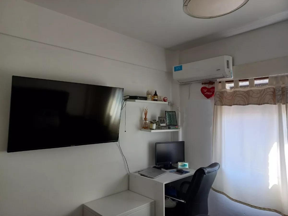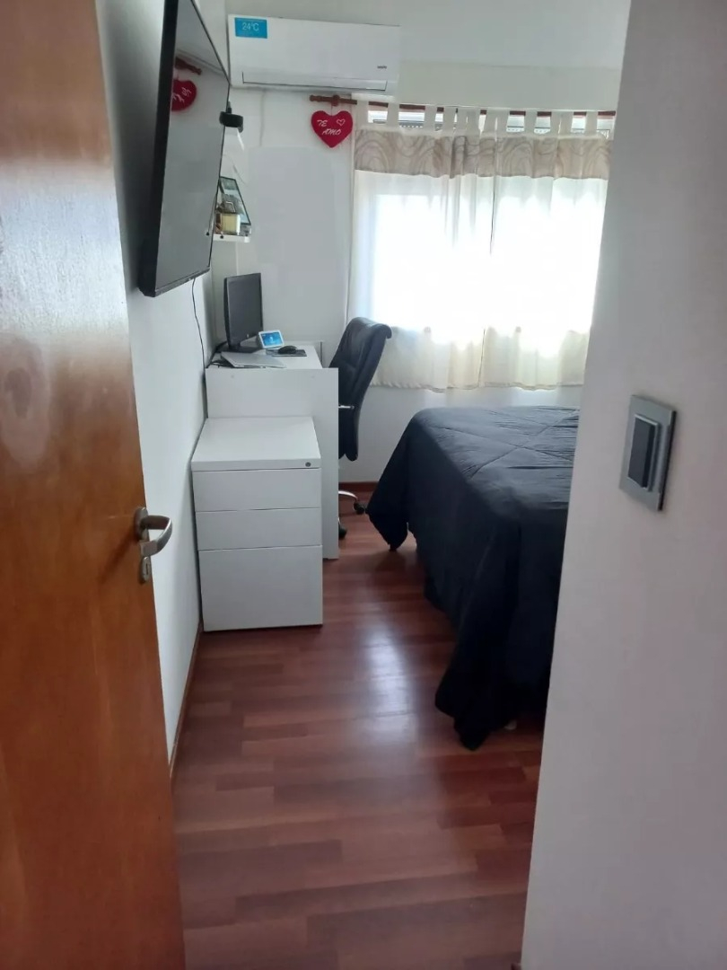 El departamento está ubicado en piso medio, cuenta con un balcón en el living con vista abierta hacia al frente. Todos los ambientes tienen ventanas que le proporcionan ventilación y mucha luz natural durante todo el día. La cocina es independiente, está amoblada con alacenas y bajo mesada, y cuenta con un sector de lavadero; tiene ventanas hacia el pulmón del edificio. Los dos dormitorios cuentan con aires acondicionados frío/calor, placards con doble puerta corrediza y una baulera para mayor espacio de guardado. El baño es completo.