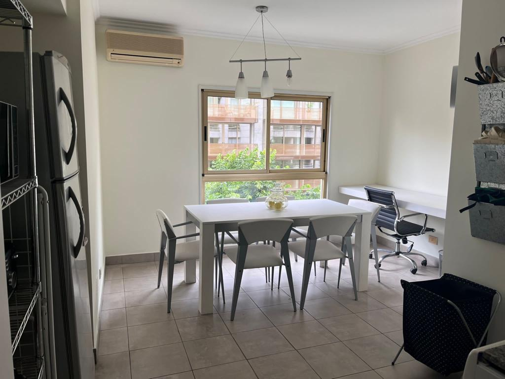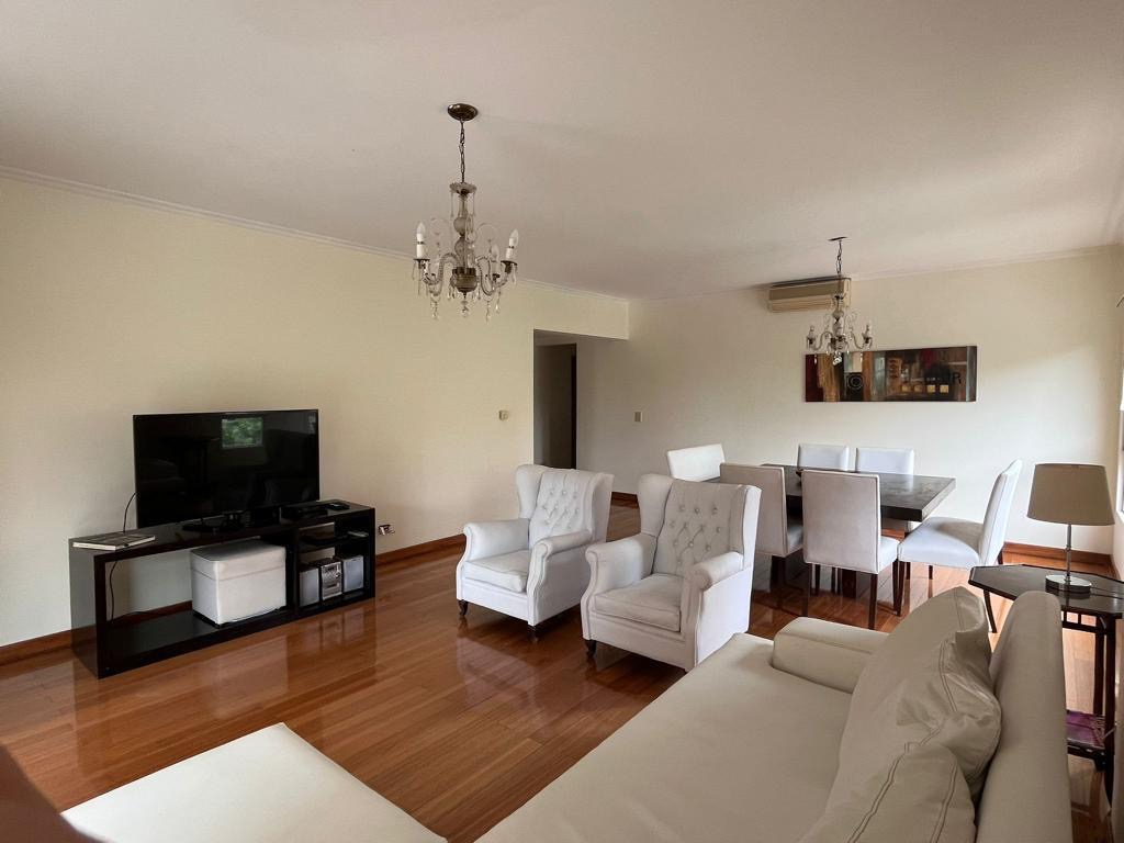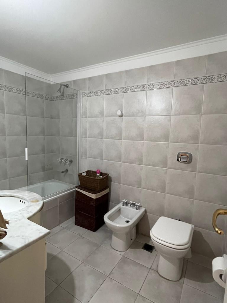 El departamento cuenta con 3 habitaciones, la habitación principal en suite con vestidor y balcón, televisión, placard con caja fuerte, lampara araña, pisos de parque, baño con bañera, lava manos, espejo, inodoro, bidet, muy amplio. Segundo dormitorio con cama de una plaza, con escritorio y placard. Tercer dormitorio con cama de una plaza, escritorio. Baño con bañera, bidet, lava manos, inodoro. Toilette de recepción con inodoro y lava manos con espejo grande. Living amplio con 3 sillones, mueble de televisión con televisión, decoración con lamparas de araña, mesa con sillas. Cocina con heladera con frezzer, cocina, alacena, bajo mesada, utensilios de cocina, microondas, lavarropas automático, tostadora, cafetera. Mesa con 6 sillas en el sector de la cocina. Cuenta con cocina techada y balcón.
