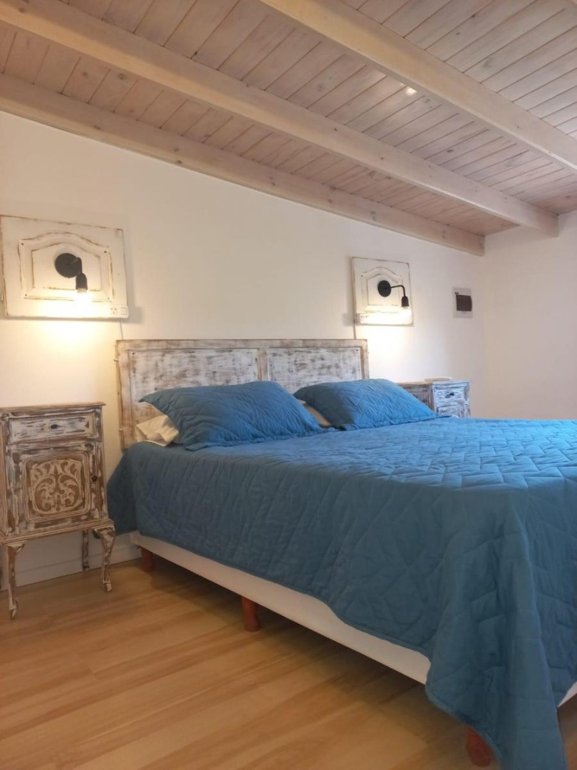 El departamento es amplio y luminoso, tiene un ventanal con salida hacia un balcón aterrazado. La cocina está integrada y está totalmente equipada con heladera con freezer, cocina eléctrica, electrodomésticos, utensilios de cocina y vajilla. El living comedor cuenta con mesa de comedor con sillas, sillones, TV y aire acondicionado frío/calor En la planta superior se encuentras los dos dormitorios, el primero cuenta con una cama tamaño matrimonial, placard, y aire acondicionado frío/calor. El segundo dormitorio cuenta con dos camas individuales. Cuenta además con un amplio espacio de vestidor para mayor espacio de guardado. El baño es completo con bañera.