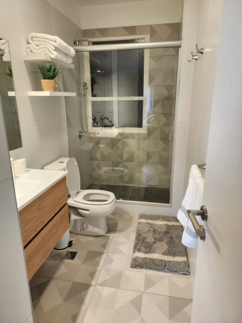 Posee 2 dormitorios muy luminosos, uno de ellos con baño en suite. Segundo baño con ducha.