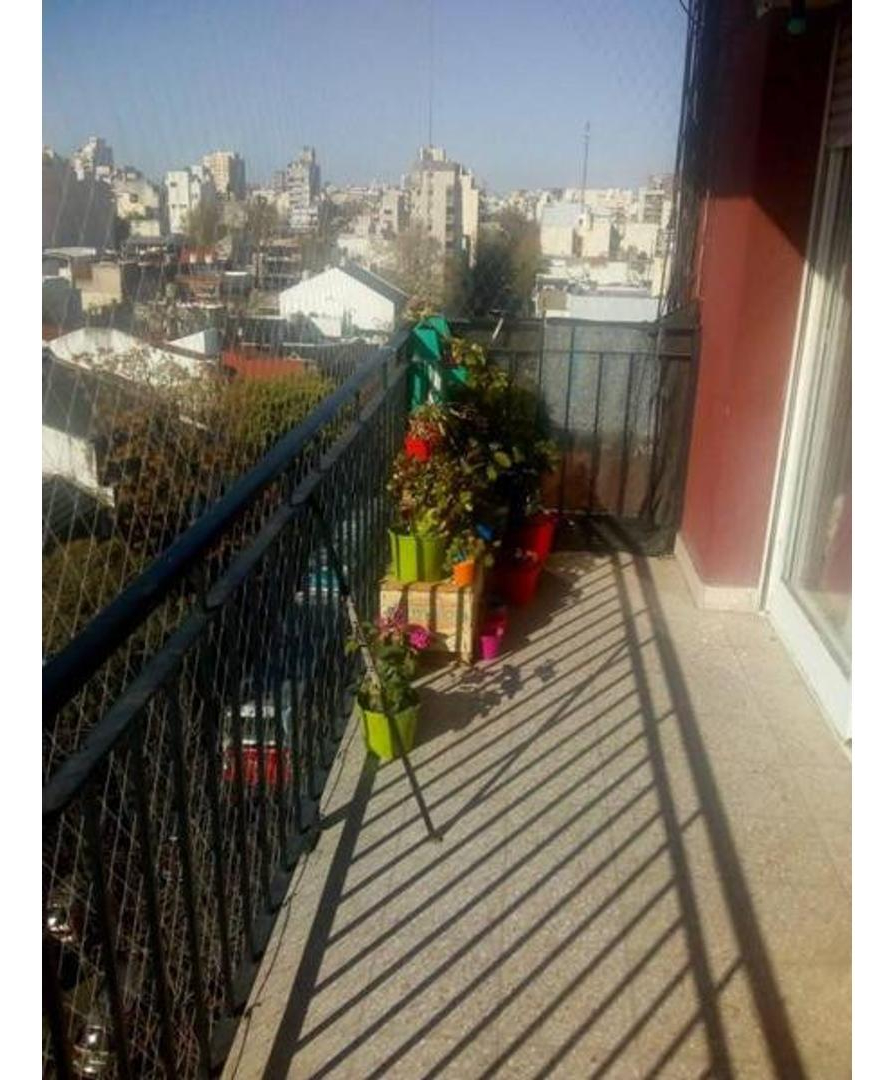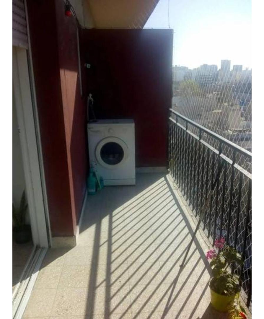 Gran balcón a la calle, con conexiones para lavarropas