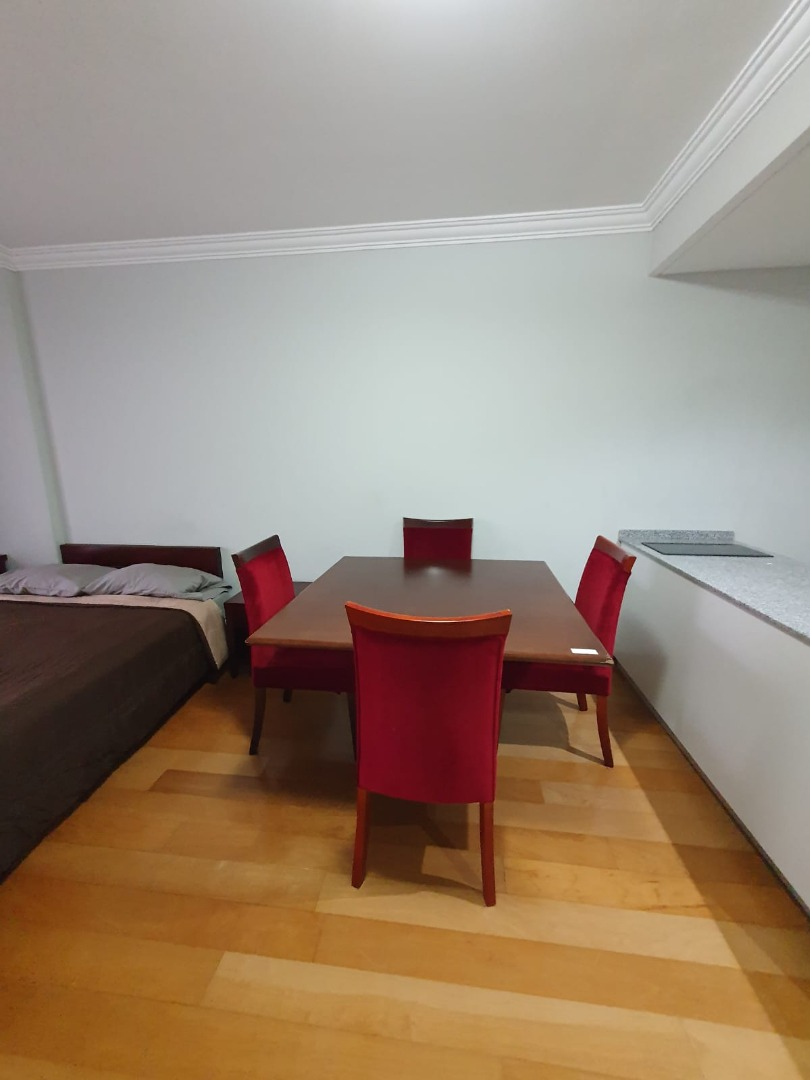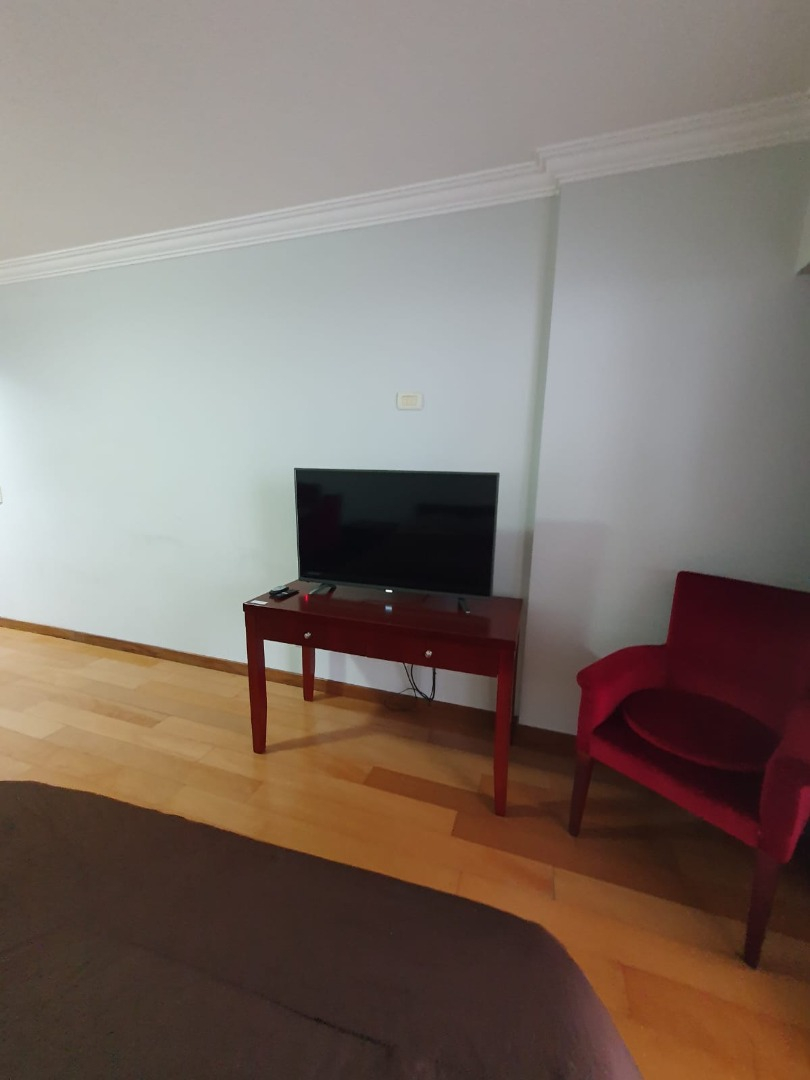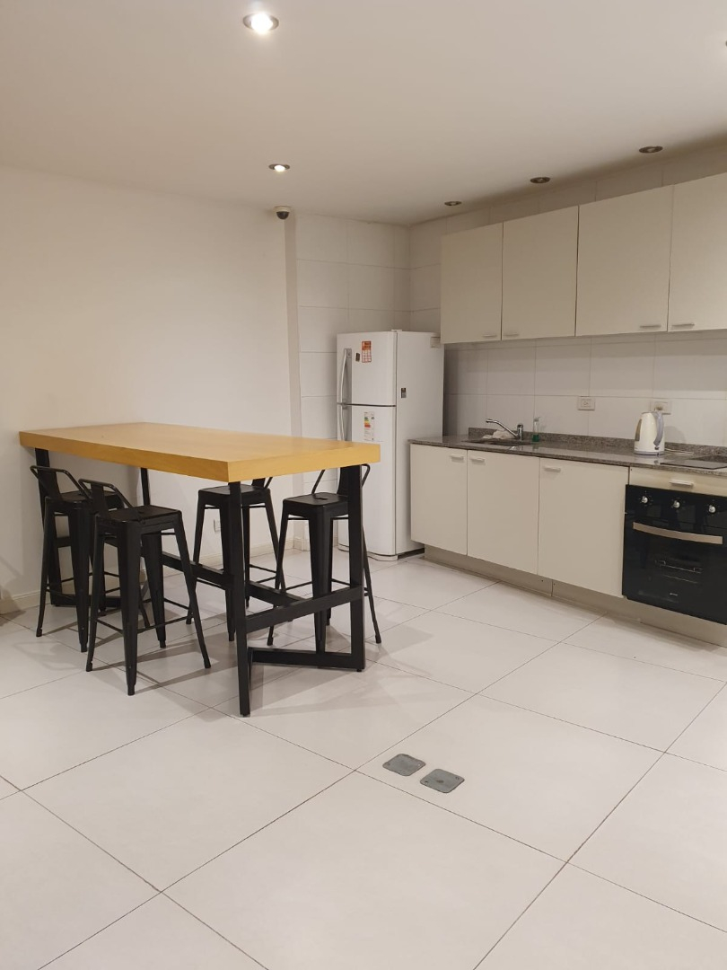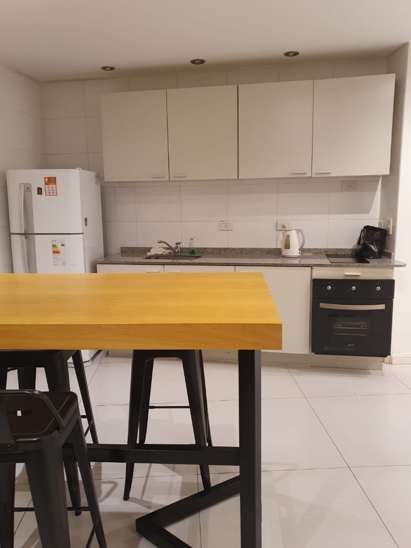 El departamento cuenta con baño completo con ducha, placard, cocina integrada, mesa y sillas de comedor, cama doble, TV, aire acondicionado. Balcón terraza al frente.