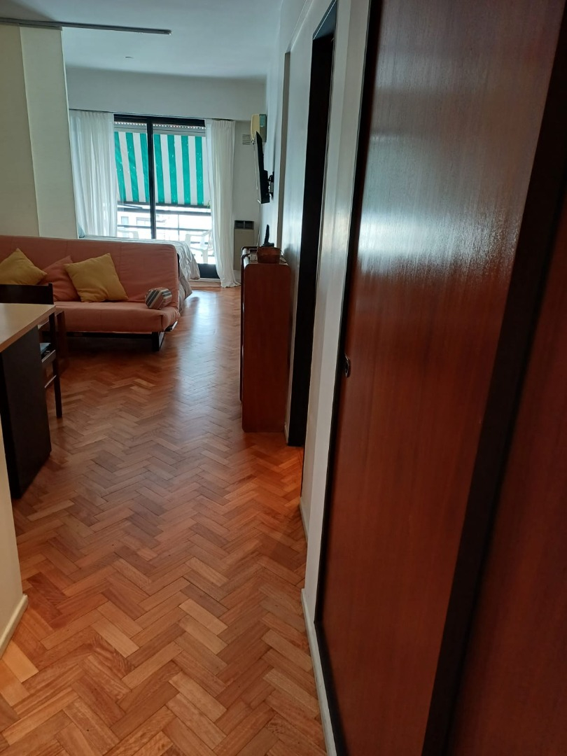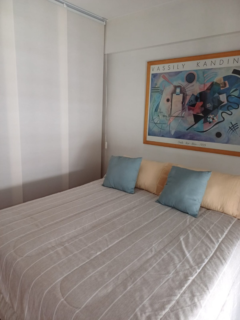 El departamento es muy luminoso y aireado. Cuenta con living comedor amoblado con sofá, mesa baja y mesa con sillas de comedor. Una división con paneles móviles tipo sunscreen logra privacidad sin resignar luminosidad para el sector dormitorio equipado con sommier de 2 plazas, brindando la opción de separarlo en 2 camas simples. Cocina con heladera con freezer, horno a gas, microondas y vajilla. Baño completo con bañera. Aire acondicionado y calefacción.