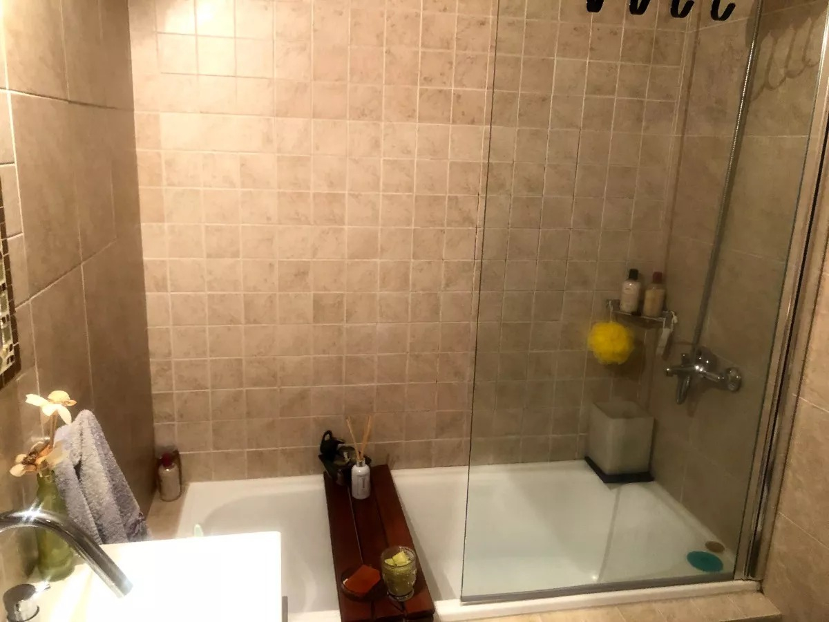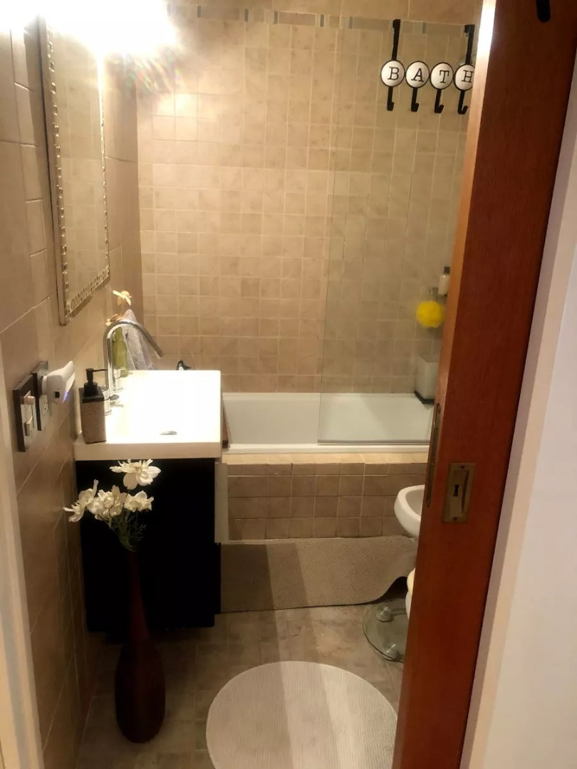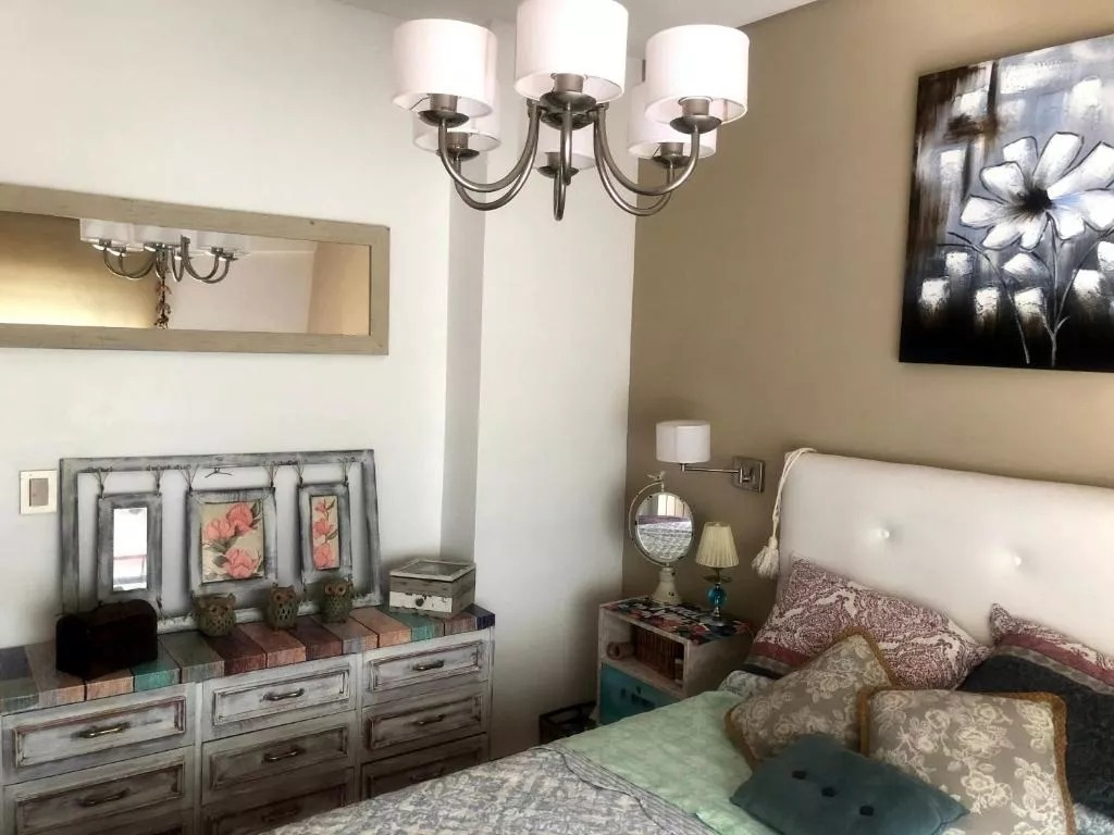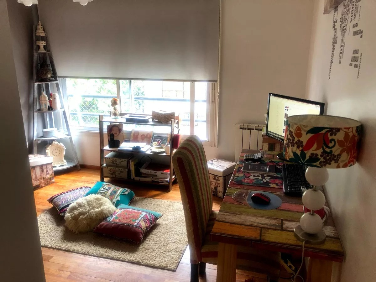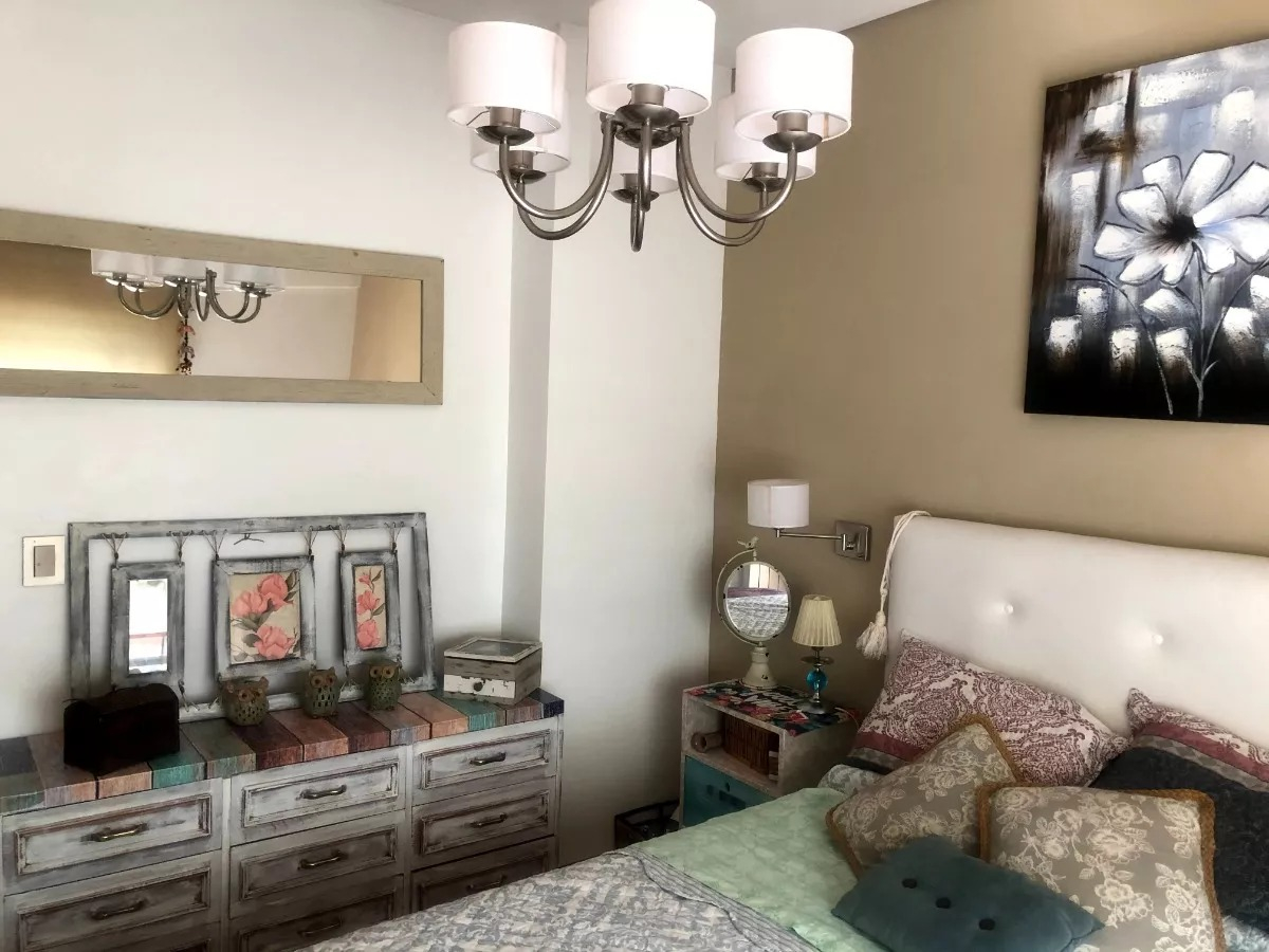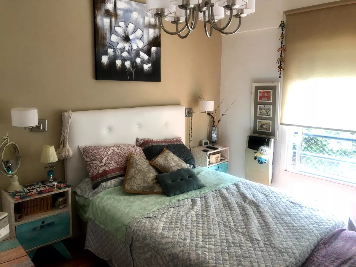 El departamento es un piso amplio, está completamente decorado y es muy luminoso, todos los ambientes tienen ventanas y el living tiene un ventanal con salida hacia el balcón, con plantas y sillas de exterior. La cocina está completamente equipada con heladera con freezer, cocina a gas, lavavajillas, electrodomésticos, utensilios de cocina y vajilla. Tiene además mesa con sillas. El living comedor cuenta con mesa de comedor con sillas, sofá, mesas de apoyo y TV led. El dormitorio principal cuenta con cama matrimonial, mesas de luz, espacio de guardado, estufa y otra TV Led. El segundo dormitorio cuenta con escritorio y espacio de guardado. Tiene dos baños completos con bañera.