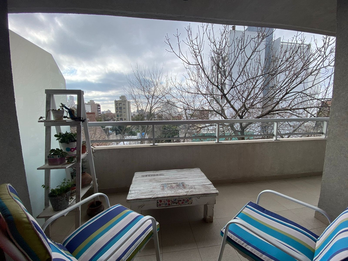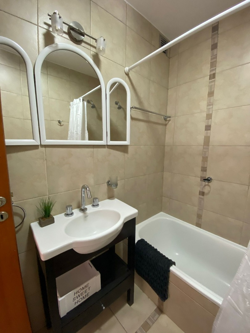 Departamento muy luminoso con un balcón con vista al frente, living con sillón de tres cuerpos, tv, mesa ratona y otra mesa para tres, cocina totalmente equipada con heladera, horno y vajilla, el baño completo con toilette, bidet y bañera, por ultimo el dormitorio cuenta con una cama queen, mesa de luz y un amplio placard. Ideal para dos personas.