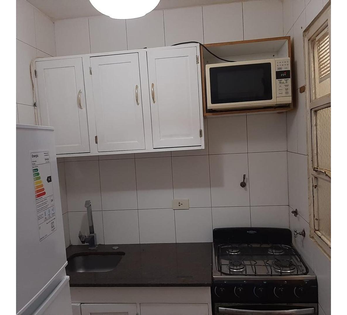 Ubicado en planta baja, compuesto; de dos ambientes amplios con capacidad cómoda para 3 huéspedes. Cuenta con un dormitorio con cama queen; docel capitone, mesas de luz , placard, ventana con vista al patio y altillo. La cocina está amoblada con termo tanque de 80 lts, heladera con frezzer, cocina, microondas, cafetera y hervidor eléctrico, vajilla . No posee gas ni lavadora cuenta con espacio de lavado contender , pileta para lavar ropa , set de cajas plásticas para guardado de jabón y art de limpieza. ( es todo eléctrico)