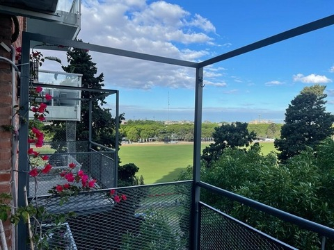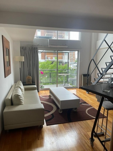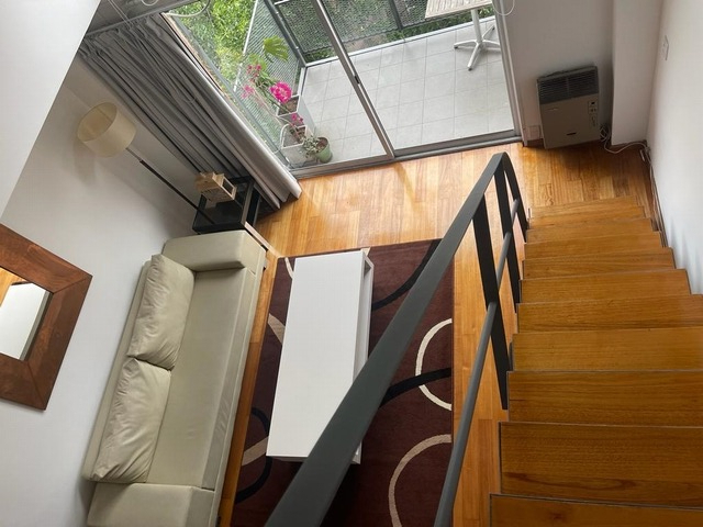 Hermoso departamento tipo duplex con balcón. Vista a la cancha de Polo, muy luminoso. Living con cocina integrada con barra. Aire acondicionado y calefacción. Entrepiso con dormitorio con cama de dos plazas, placard y baño completo.