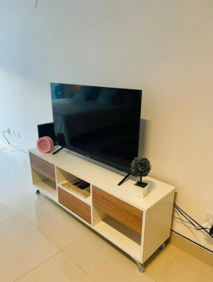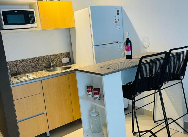 Cómodo, 2 camas twin (opcion dos plazas), ropero, sofá con mesa ratona, cocina integrada y equipada. Tostadora, pava eléctrica, heladera con freezer, Cafetera Nespresso, Microondas, accesorios de cocina, ropa de cama, baño completo con bañera. Smart TV 43 pulgadas. Aire acondicionado, Lavarropas.