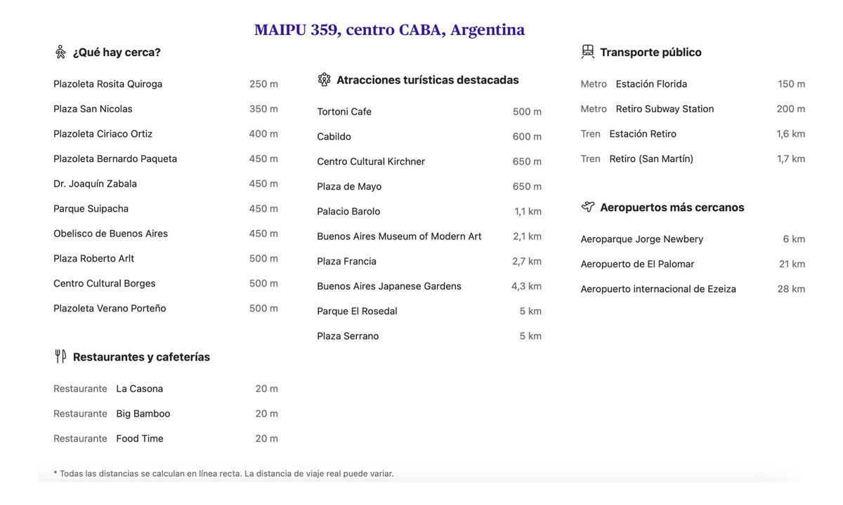 Se ubica a una cuadra de Subte Linea B, a dos cuadras de Subte Linea C, cercano a Av. 9 de Julio, cercano al Teatro Colon, Zona comercial, supermercados, cafeterías, supermercados, cercano a Galerías Pacifico, cercano a Plaza de Mayo, cercano al Puente de la mujer.