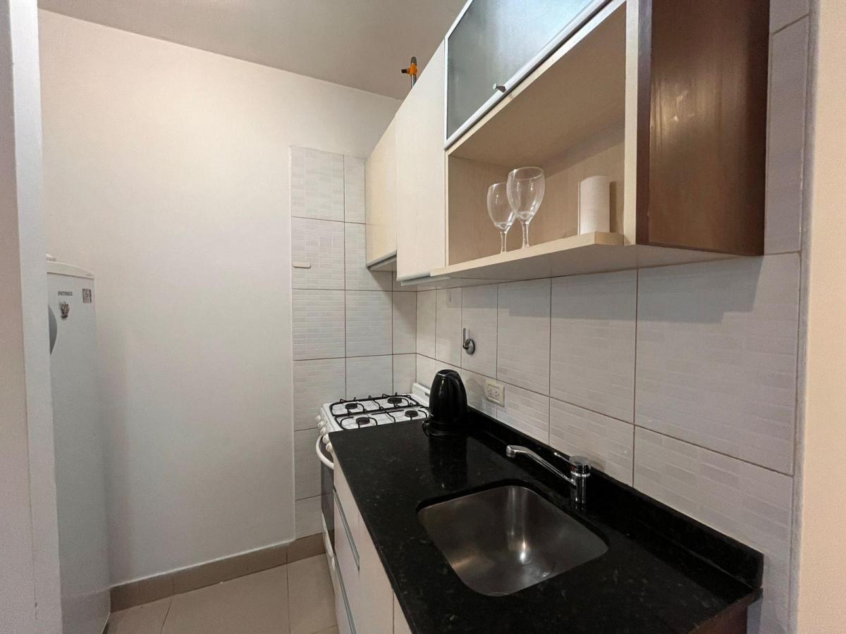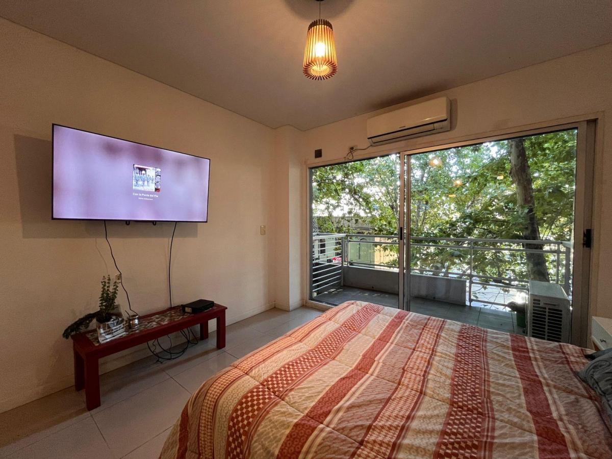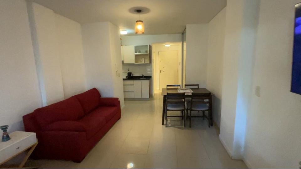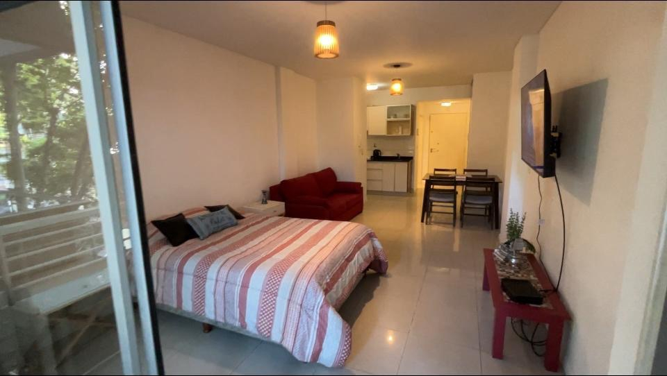 El departamento cuenta con cama matrimonial, television, aire acondicionado, mesa de luz, sofa, mesa con sillas, cocina, alacena, bajo mesada, utensilios de cocina, baño con bañera, inodoro, bide, balcon al frente luminoso.