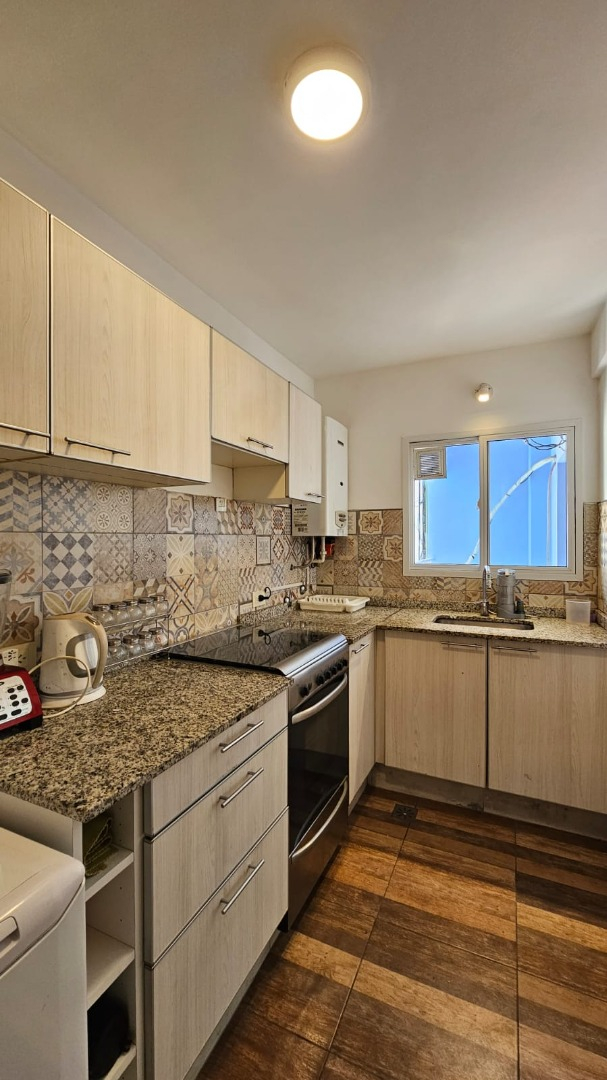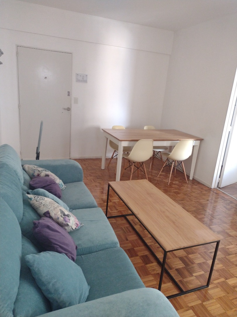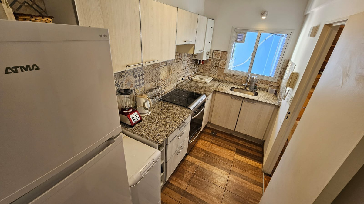 El departamento está ubicado en piso alto, es muy luminoso, tiene ventanas en todos los ambientes y un ventanal con salida al balcón en el living. La cocina es independiente, está completamente equipada con heladera con freezer, cocina a gas, electrodomésticos, utensilios de cocina y vajilla. El living comedor cuenta con mesa de comedor con sillas, sofá, escritorio, aire acondicionado frío/calor. El dormitorio cuenta con cama doble, mesas de luz, espacio de guardado y ventilador. El baño es completo con bañera. Tiene lavadora.