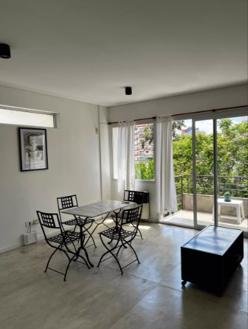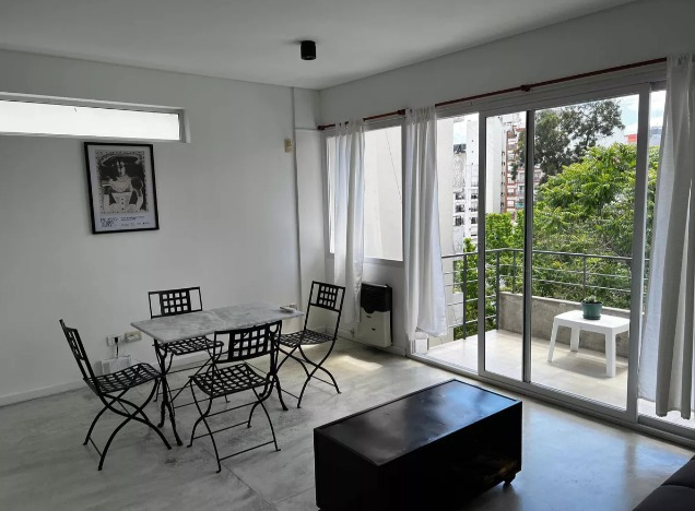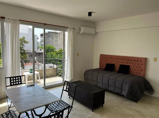 Departamento 2 ambientes minimalista, perfectamente equipado con todo lo necesario: Aire acondicionado en cada Ambiente, Smart TV, heladera con Freezer, cocina con Horno y horno microondas, Baño completo y balcón amplio que permite el paso de muchísima luz natural en el día.