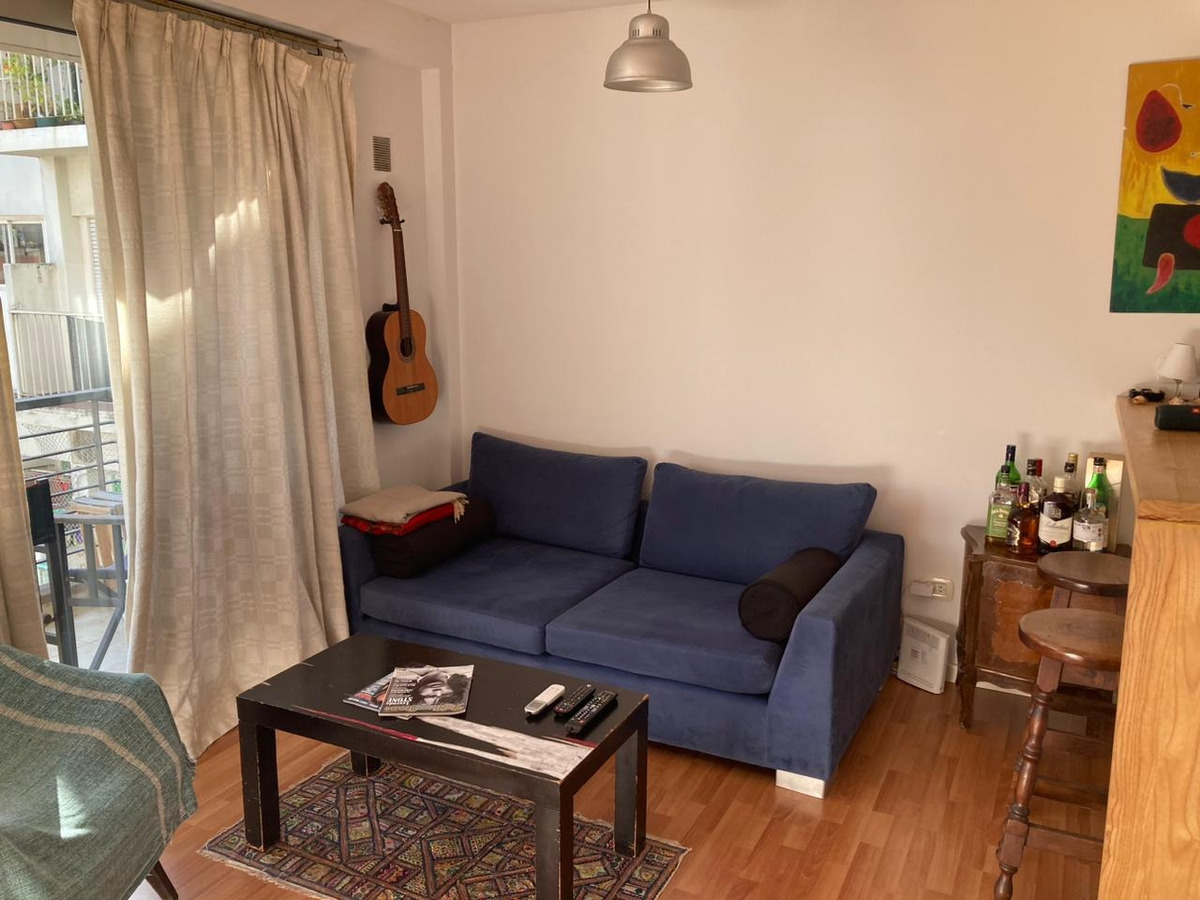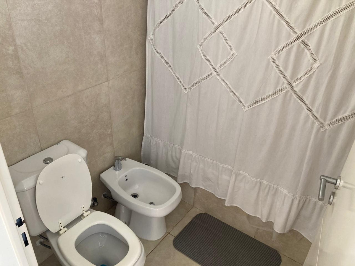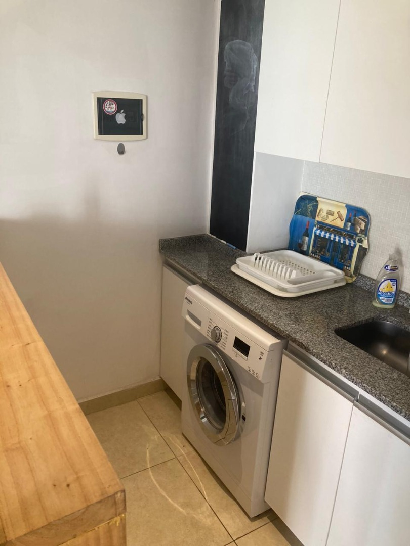 Cocina integrada con barra, bajo mesada y alacena completos, lavarropas, vajilla completa, horno y anafes a gas, cafetera, microondas.