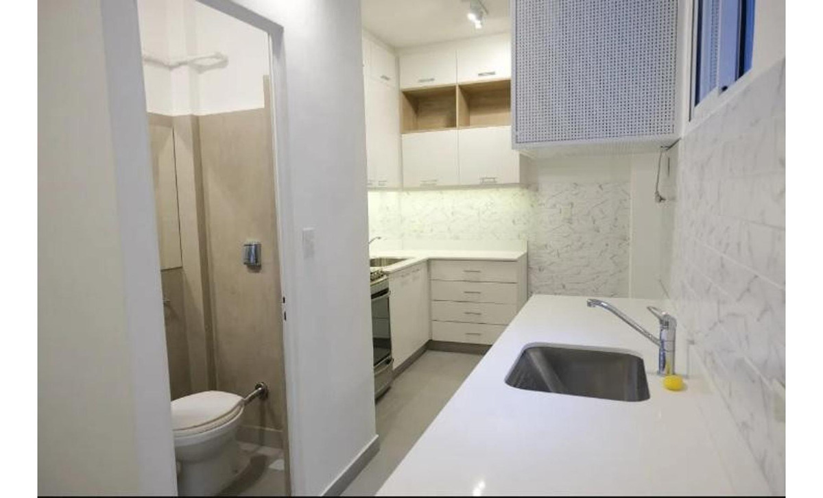 Se reciclo el baño de servició convirtiéndolo en un toilette para más utilidad, posee un baño completo en el pasillo de distribución de ambos dormitorios enteramente reciclado, y un balcón de cómodas proporciones.
