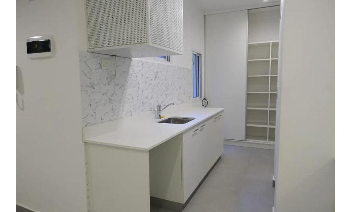 Tiene 2 dormitorios generosos con placares hechos a medida, un living comedor amplio, un estar o playroom o tercer dormitorio, y una cocina enteramente reciclada. Se unió la cocina con el desayunador, el lavadero y la dependencia que ahora forman un solo espació bien distribuido, con lugar para una mesa de comedor diario o desayunador, una barra que une la cocina con el comedor, y una amplia despensa donde originalmente era la dependencia.