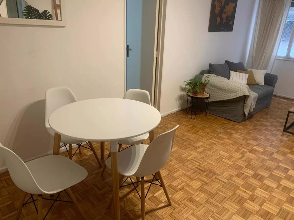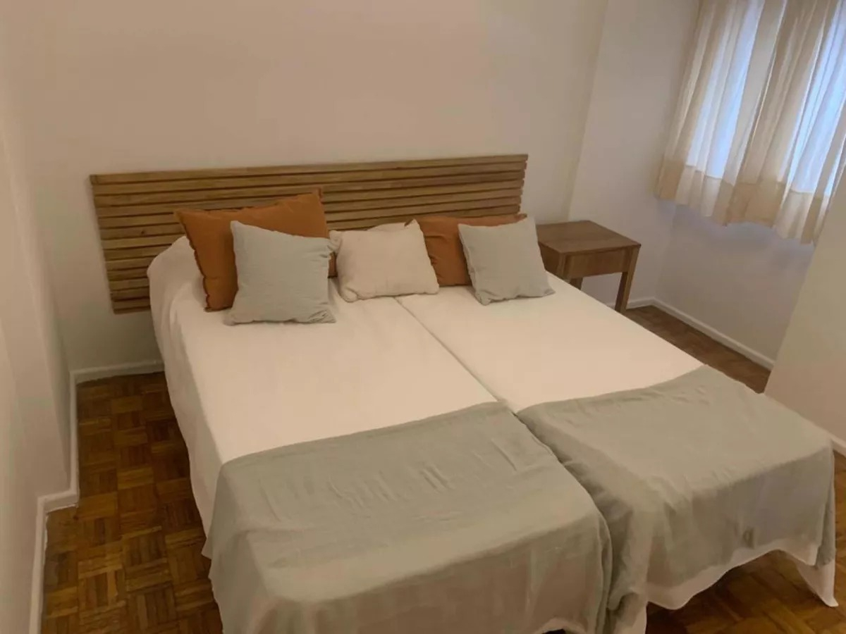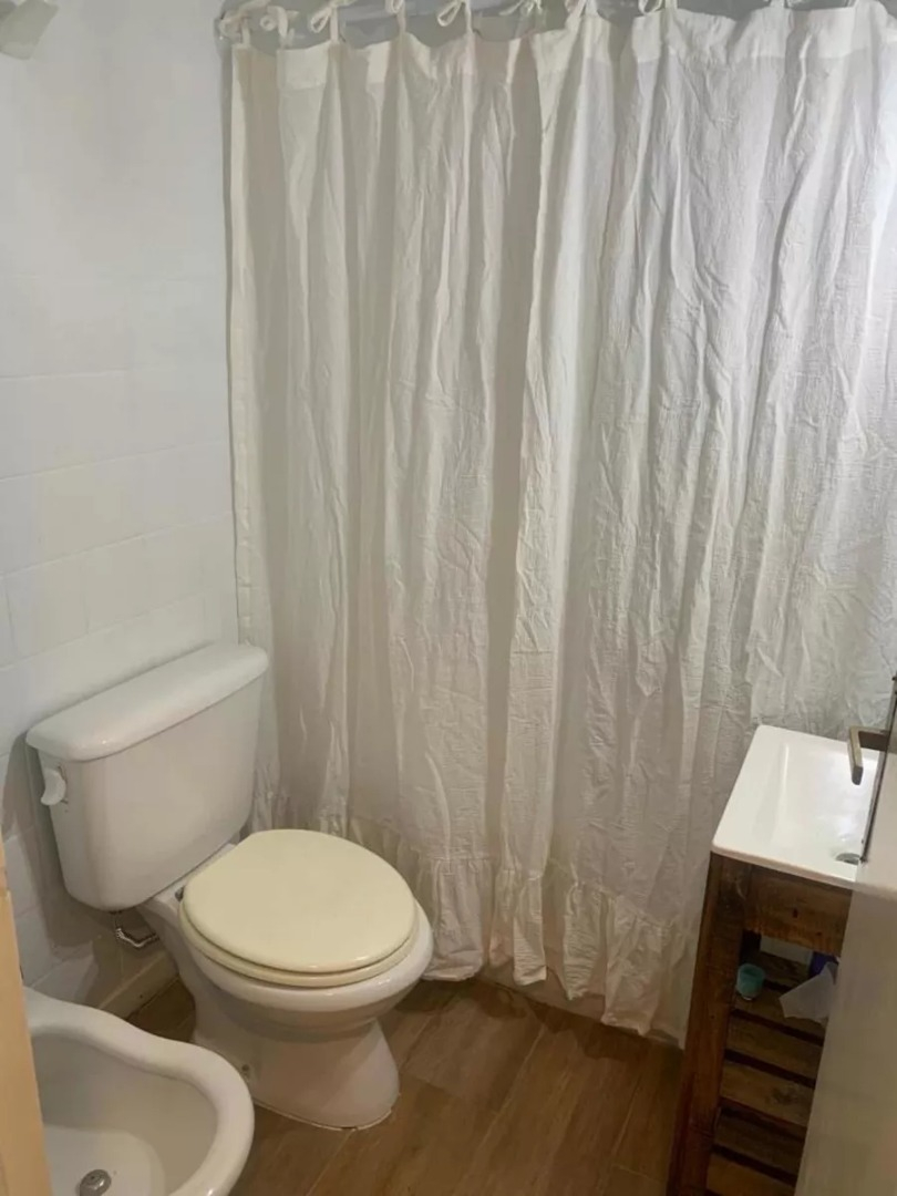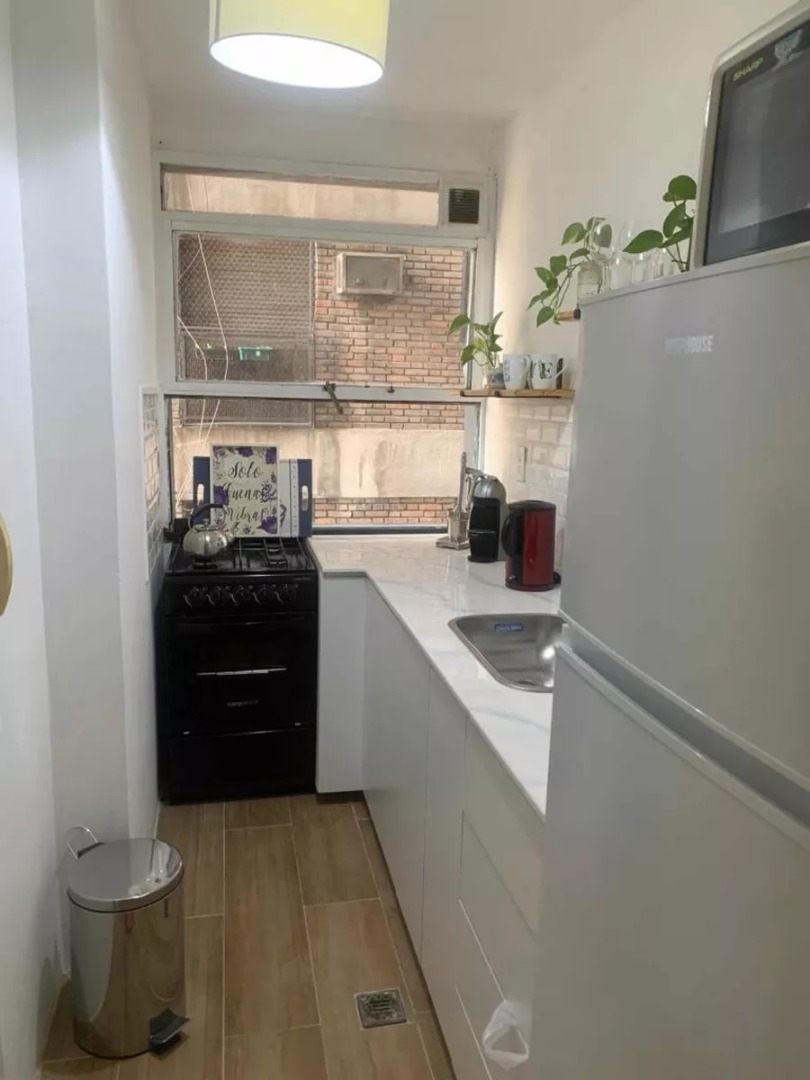 El departamento cuenta con ventanas en todos los ambientes y aires acondicionados. La cocina está separada, amoblada con estantes y bajo mesada, y completamente equipada con heladera con frizzer, cocina a gas, microondas, electrodomésticos, utensilios de cocina y vajilla. El área del living comedor cuenta con sofá, mesas, un puff y TV led; hay una mesa de comedor con cuatro sillas. Tiene una amplia ventana a lo largo de toda la pared. El dormitorio principal cuenta con dos camas de una plaza, que pueden juntarse logrando una cama de dos plazas. La segunda habitación tiene camas tipo nido, para dos personas; tiene también un escritorio con silla de escritorio y una cajonera. El baño es completo con bañera.