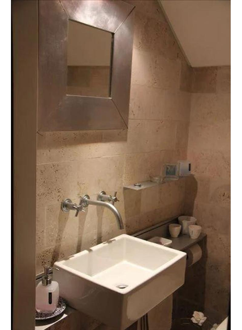 Toilette revestido mármol crudo y lavadero.