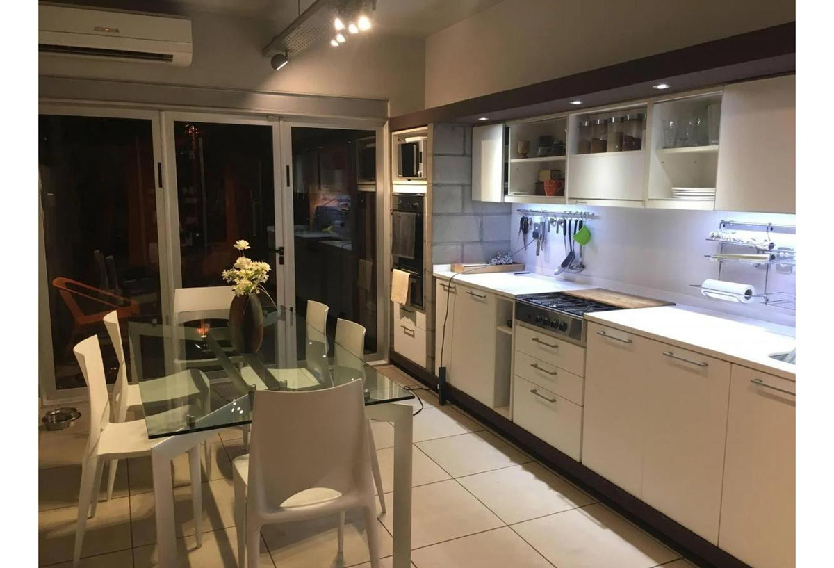 A continuación se encuentra la cocina comedor, pisos de porcelanato, detalles modernos, anafe a gas, todo en excelente estado.