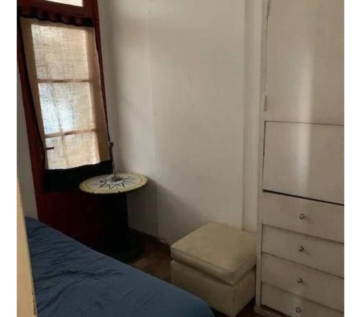 Dormitorio pequeño con placard y ventana, doble ingreso por pasillo de distribución y lavadero, piso de baldosa.