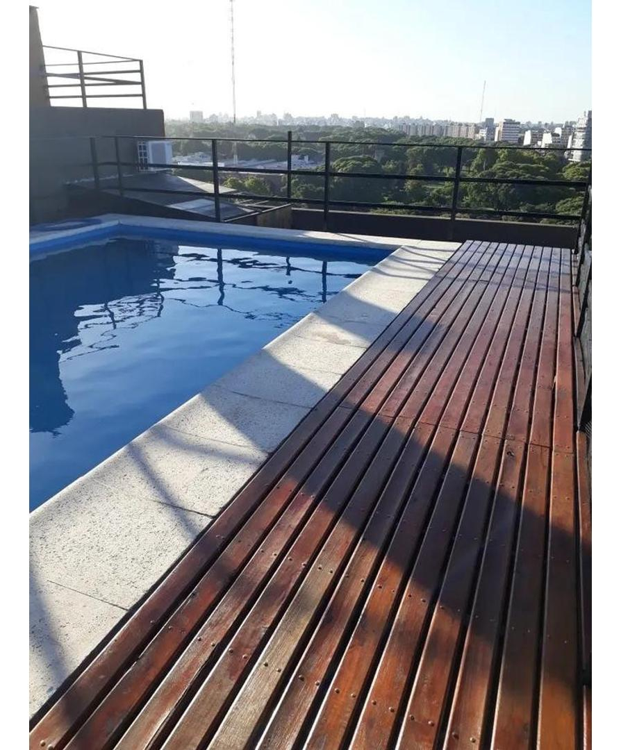 El edificio cuenta con cochera, pileta y dos ascensores.