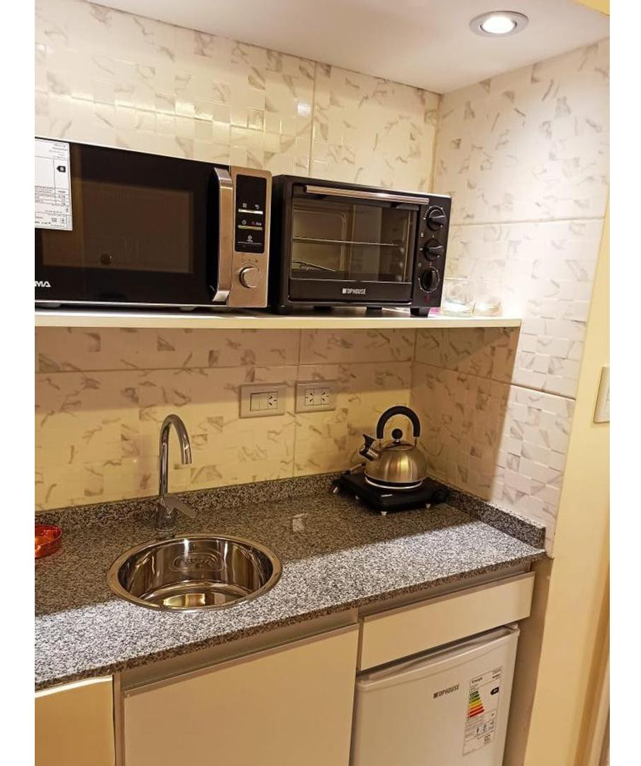 Al ingresar, nos encontramos con un sector de cocina equipado con heladera bajomesada, microondas, horno eléctrico y anafe. Ambiente principal con un extenso ventanal al frente, con vista al río. Equipado con cama de dos plazas, cama estilo marinera, que funciona perfectamente como sofá, TV, mesa pequeña y sillas. Cuenta con espejo, placard, y cómodo baño completo con bañadera.