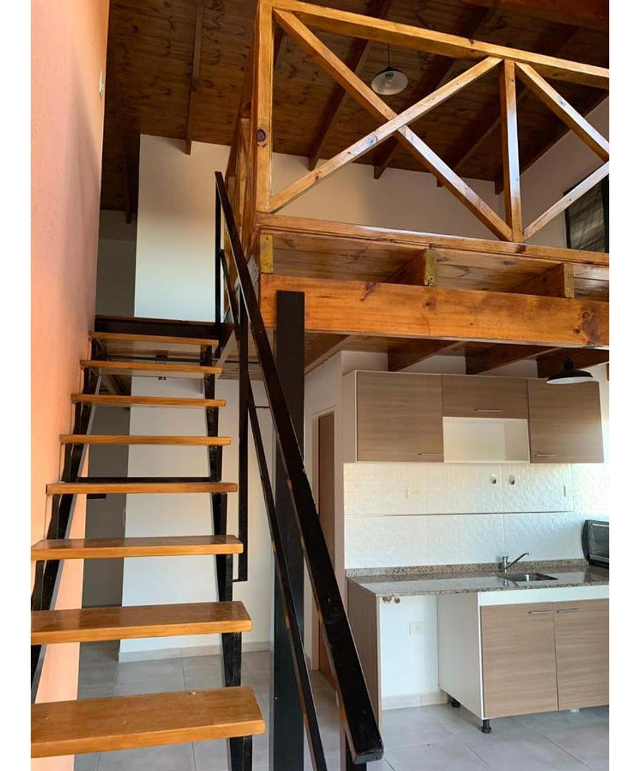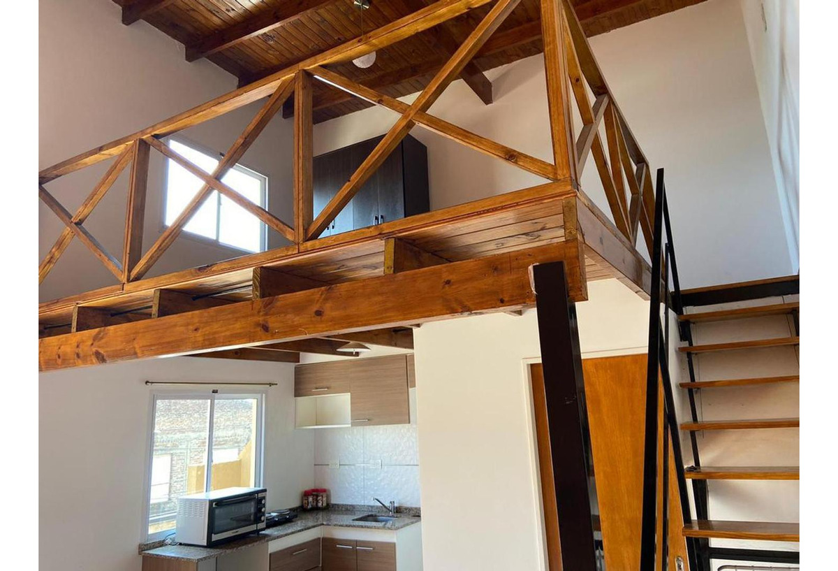 La habitación se encuentra en entrepiso con escalera de madera, buena entrada de luz y ventilación.
