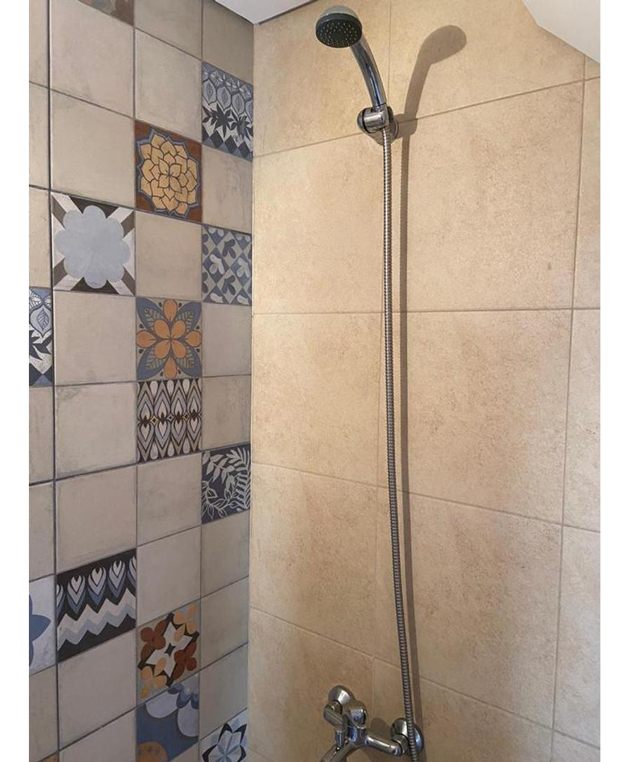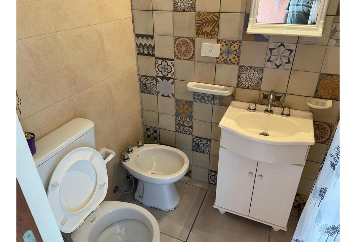 Baño completo muy bien organizado y balcón con lavadero al aire libre.