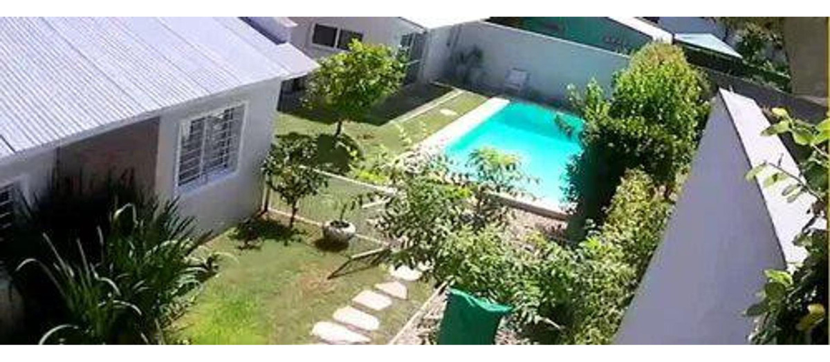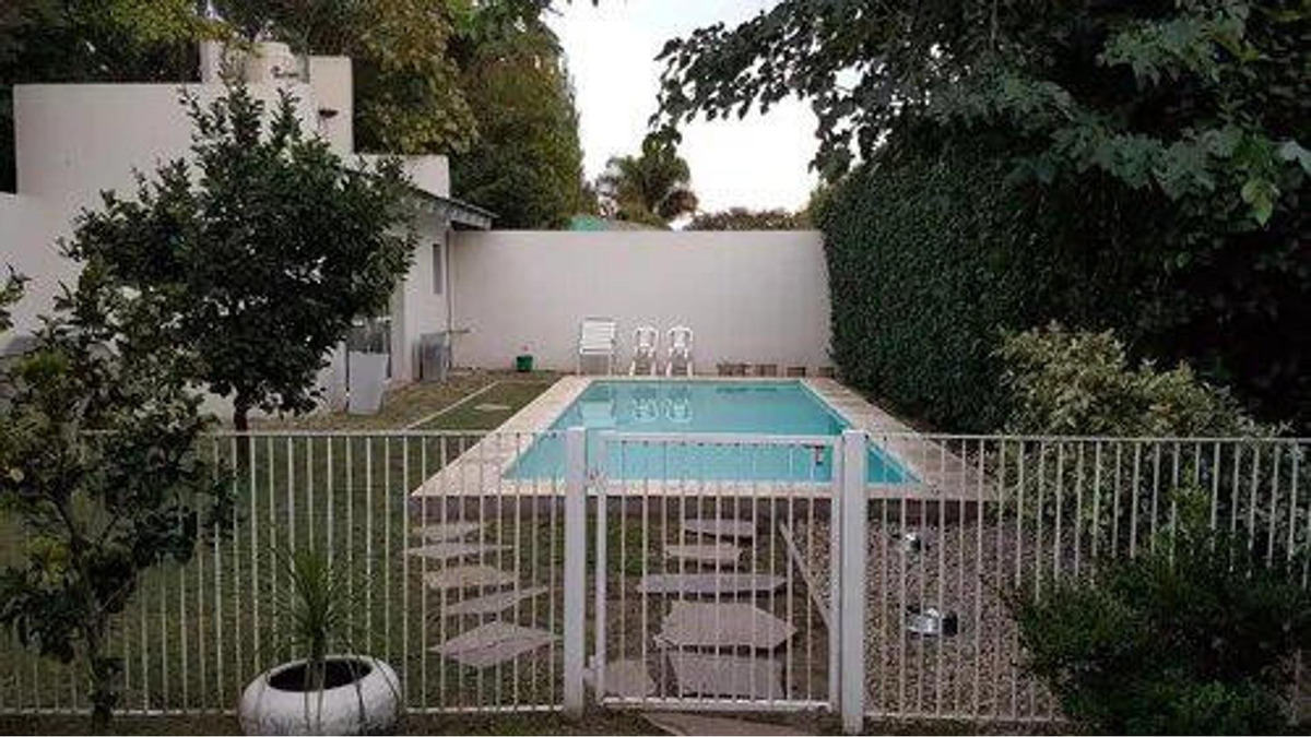 La parte exterior de la propiedad está compuesta por un patio que nos lleva al parque donde vemos una piscina de generosas dimensiones ( 4 x 9 y 2 mts de profundidad),