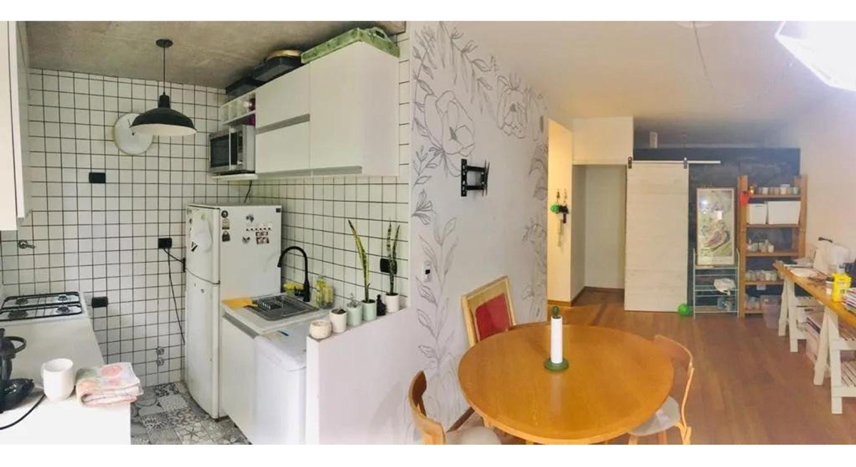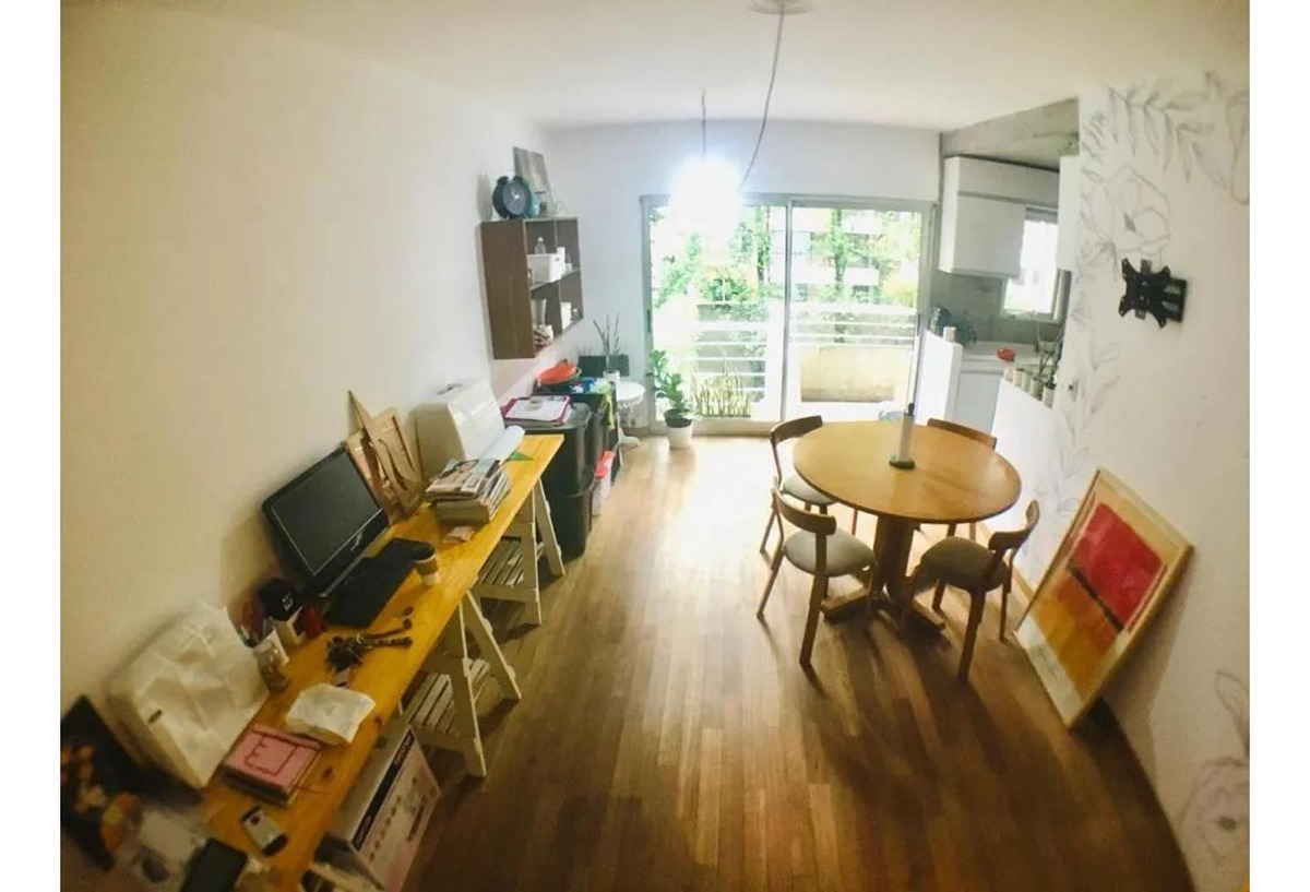 El living comedor y la cocina conectan con el balcón del departamento, que da al pulmón de manzana.