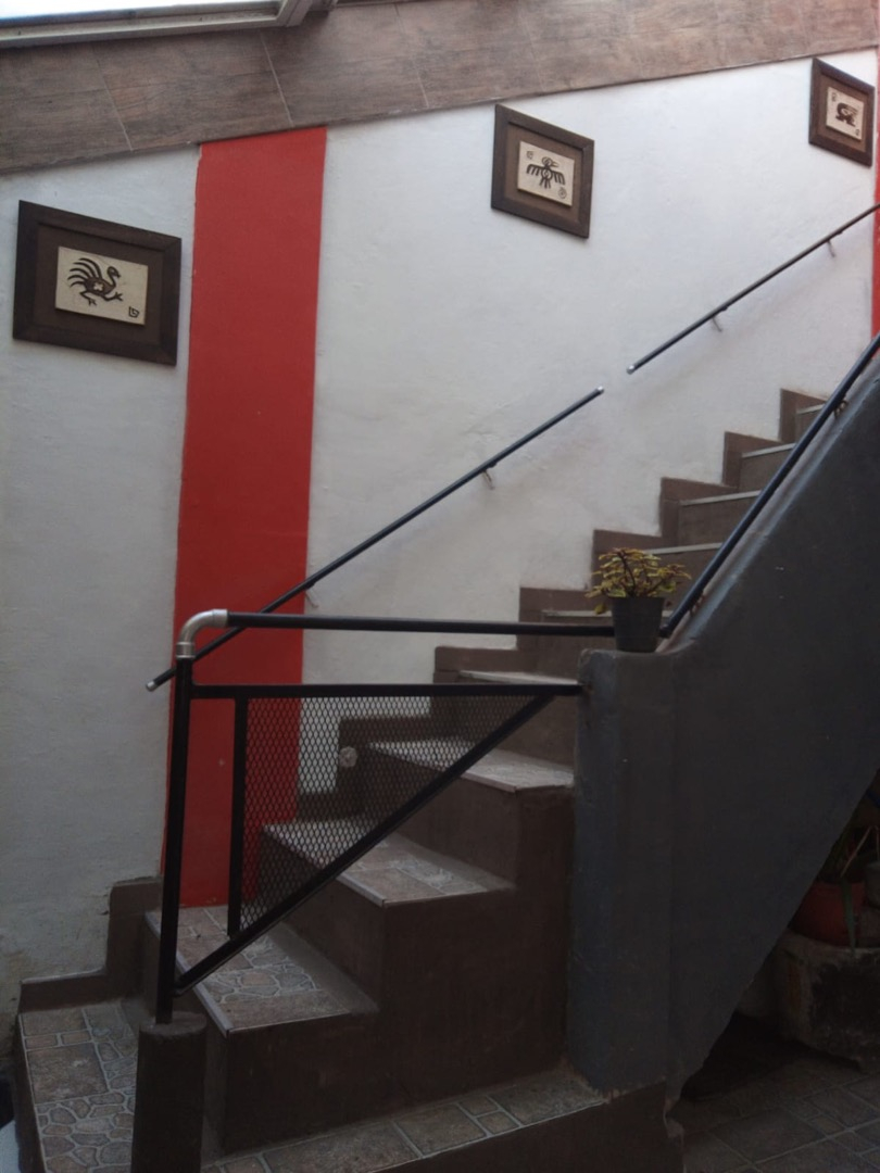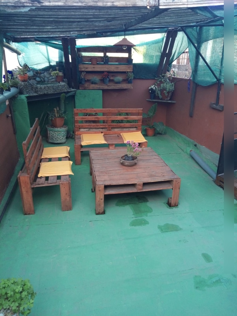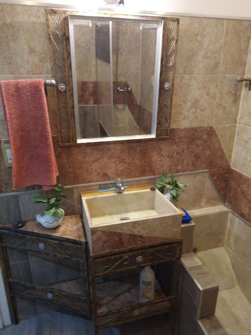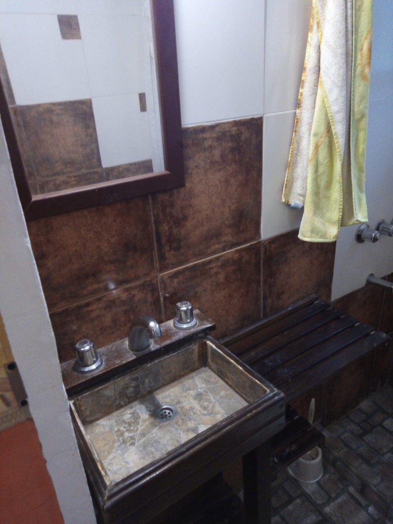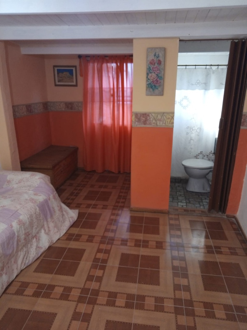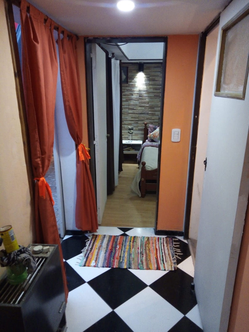 El departamento cuenta con: cocina- comedor, con pisos de cerámica, mesada de granito, bajo mesada, todo pintado de color blanco, living para sector de sillones, con mesa ratona. Habitación principal para cama matrimonial, una pared cuenta con decoración en pared con revestimiento símil piedra natural, con iluminación de dos porta luz, placar amurado a la pared con baulera, de color blanco. Baño principal con bidé, inodoro, con ducha movible, cortina de vidrio. Se ingresa al primer piso por escalera, que conecta al segundo dormitorio, que cuenta con baño privado, placard amurado a pared, pisos de cerámica color marrones con diseño, baño con ducha, lava manos. Patio con sector de parrilla ideal para agregarle sillones. Sector de lavadero con pileta.