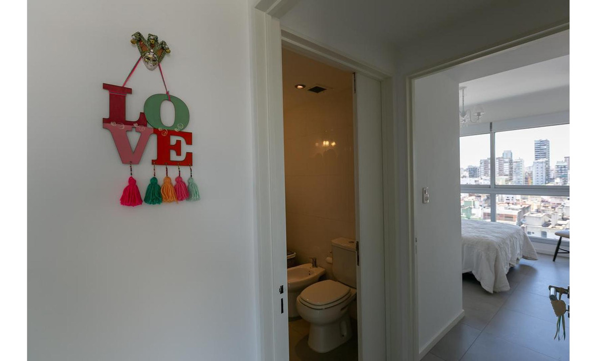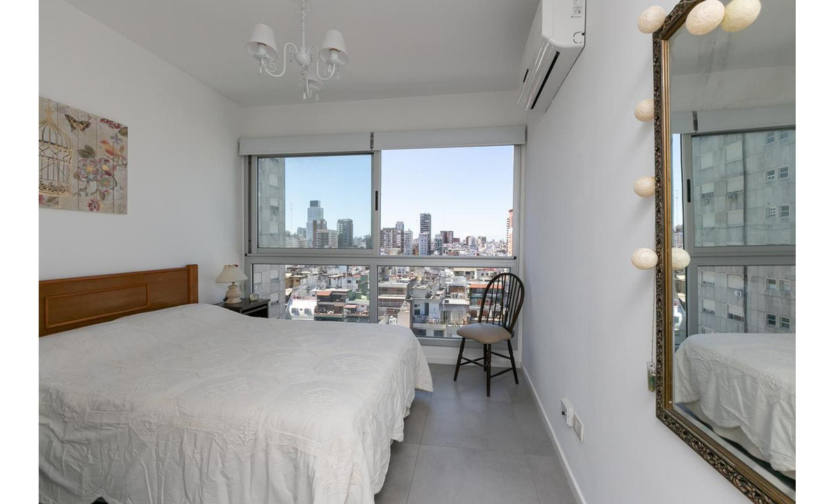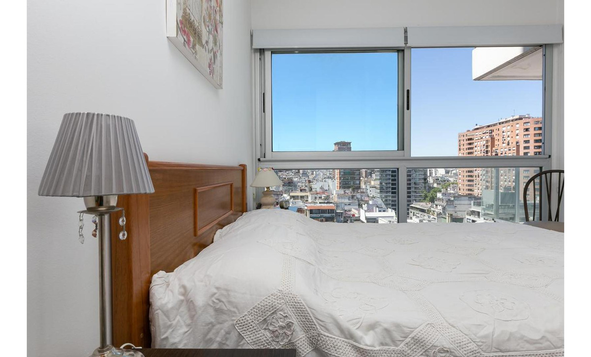 1 habitación con placard y vista abierta a la ciudad.