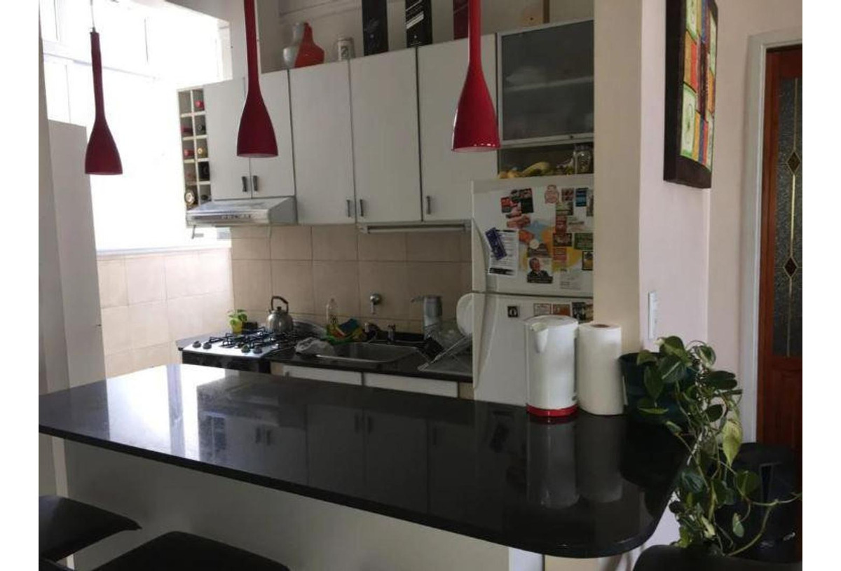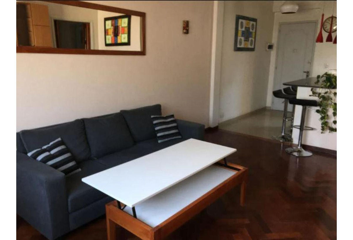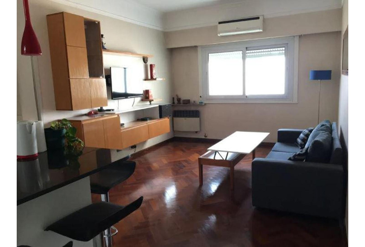 El departamento super luminoso, posee dos habitaciones, un baño completo, living comedor moderno con rack, cocina americana semi integrada al living, toilette y pisos de madera.