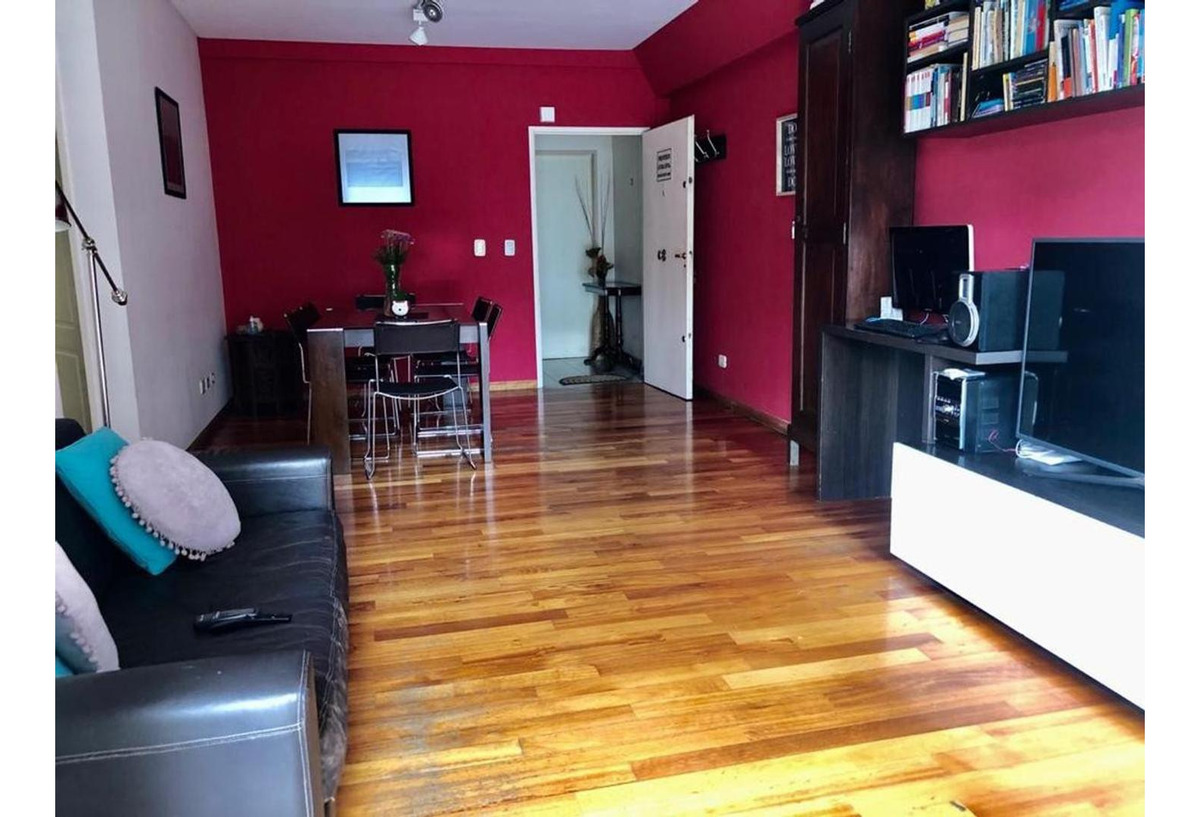 - Amplio living comedor con pisos de madera con acceso al balcón.