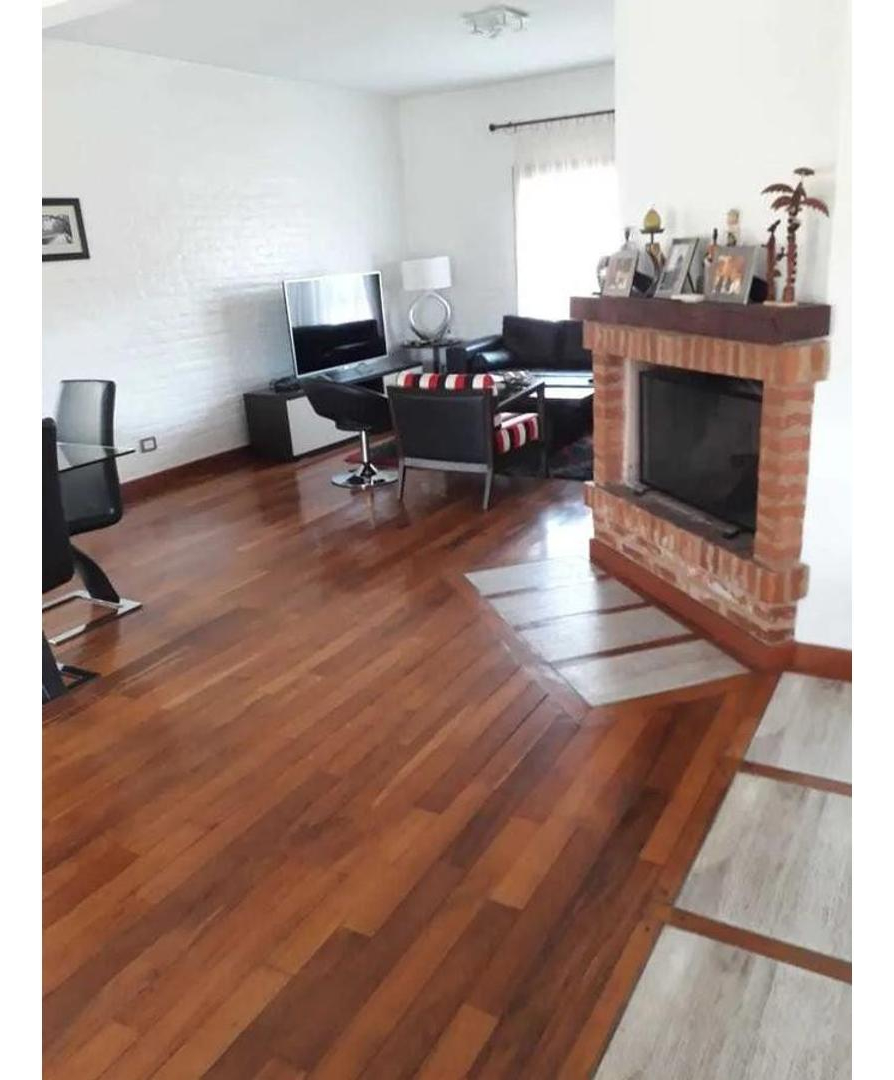 El living comedor posee pisos de madera tarugada y porcelanato.
