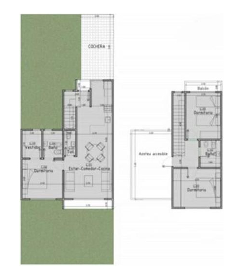 Planta baja: Hall de acceso, amplio living comedor, cocina funcional y luminosa, toilette y dormitorio en suite.
