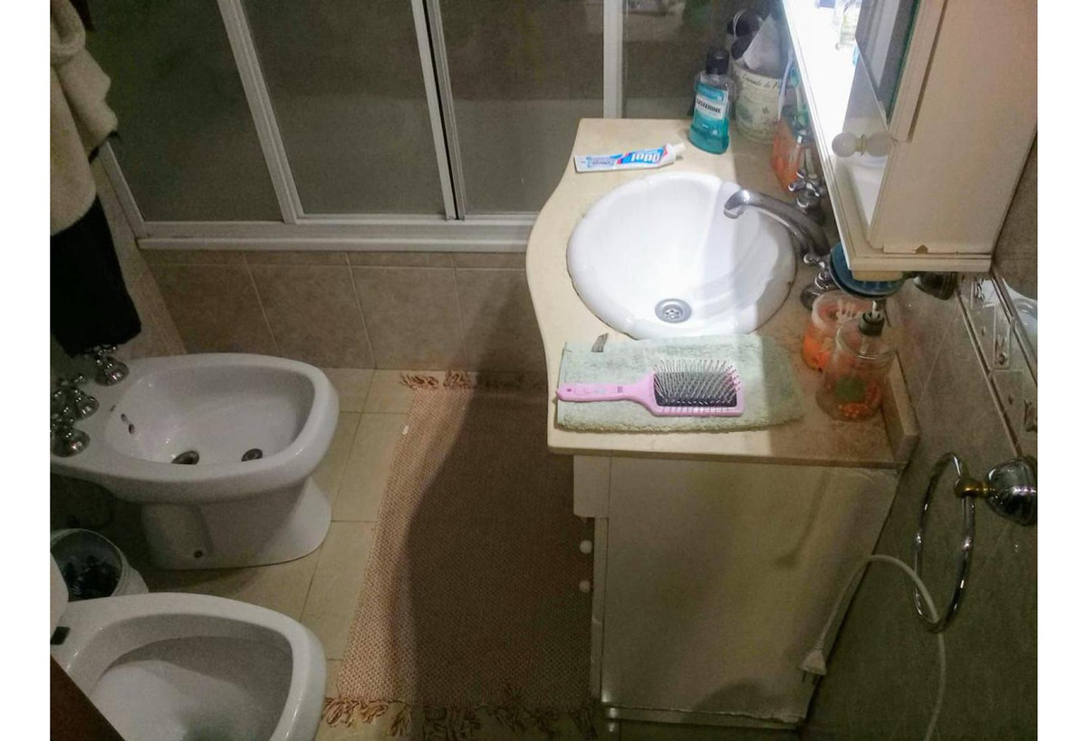 El inmueble tiene 2 baños, uno de los baños es totalmente completo, cuenta con porcelanato de la misma manera que el living.